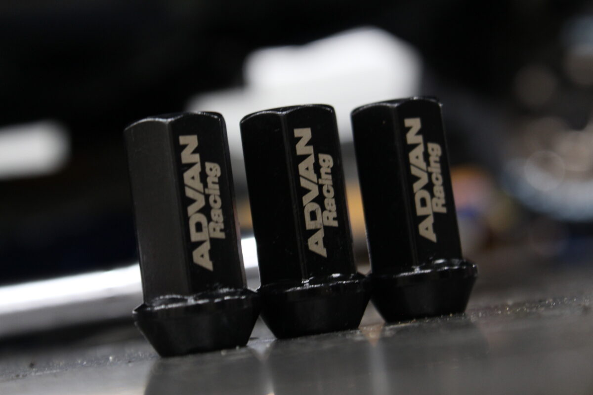 ホイールにあわせた同メーカーのナットを組み合わせることで統一感アップ角面に“ADVAN Racing”のレーザー刻印が入っているのでメーカー品だと一目で分かります