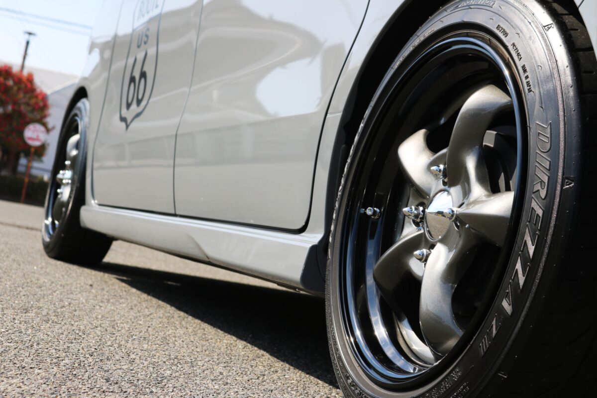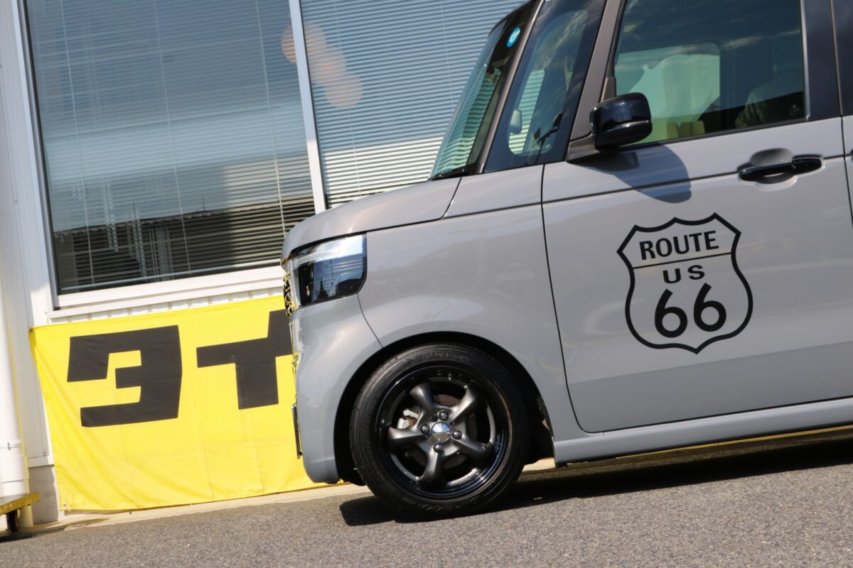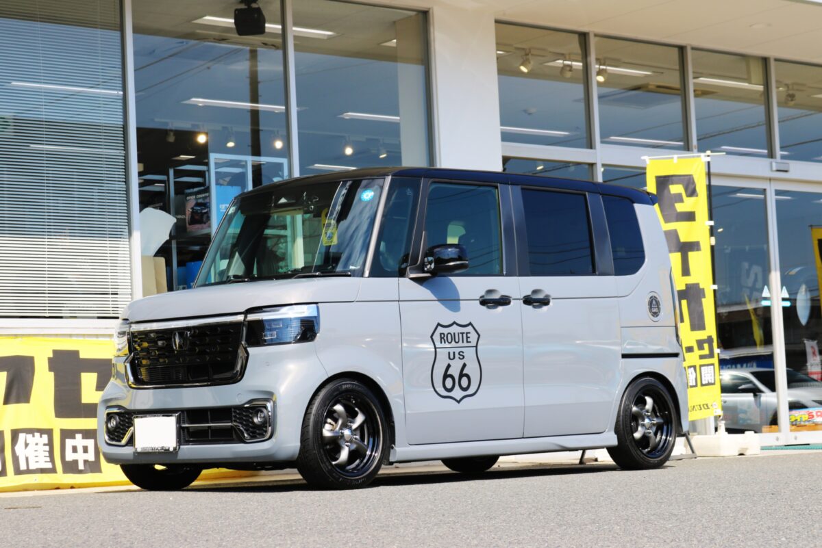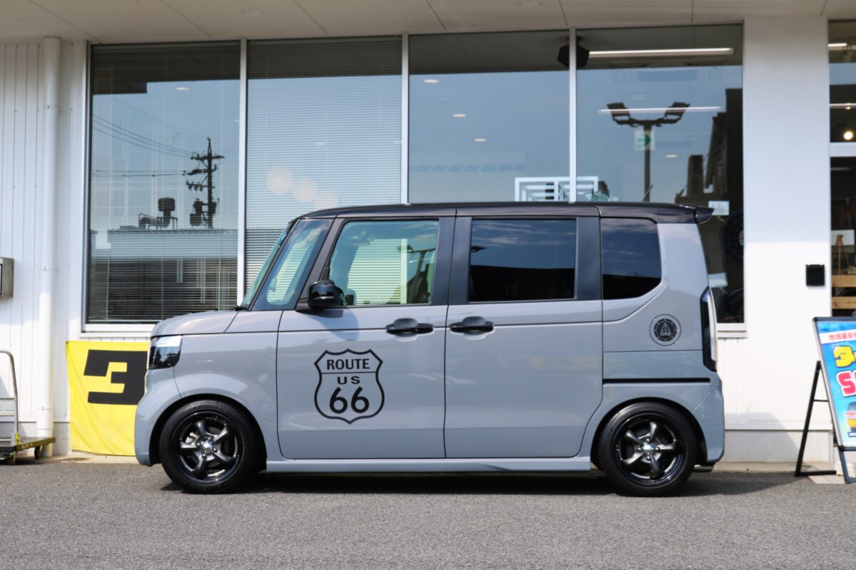 【N-BOX】前後J数変更で極めるツライチ!WORK グッカーズヘミ16インチで魅せるUSレトロスタイル。