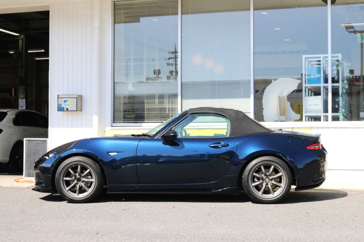 今回はNDロードスターにヨコハマ アドバン RG-D2 17インチを 装着させていただきましたのでご紹介します!   ラウンド形状の細身6本スポークで構成されたRG-D2。 ステップリム形状+マシニング加工により 2ピース風に見えるホイールでございます! 暗めガンメタカラーのマシニング&ブラックガンメタリックにて スポーティーに足元を引き締めます! タイヤはヨコハマ フレバ V701を組み合わせ。 ヨコハマホイール+ヨコハマタイヤで街乗り~ワインディングまで オールラウンドな仕様です!   ボディカラーに合わせてナットはキョーエイ レデューラのレッドカラーを選択。 足元にワンポイントがお洒落です! また、こちらのホイールカラーのメーカー推奨センターキャップカラーは ディスクカラーに合わせてブラックとなっておりますが、 リムのマシニングに合わせてプラチナシルバーを選択していただきました!   ホイールの納期を待つ間にテイン フレックスZにて さらっとローダウンもさせていただきました。 キャンバー値も7.5Jを収めるセッティングでアライメント調整を 行っておりましたのでご覧の通り綺麗な出ヅラにて完成しました! 納期未定の状態でご決断いただくのは覚悟が必要だったと思いますが 気長にお待ちいただきありがとうございました!   今回のカスタムスペック ホイール:ヨコハマ アドバン RG-D2 (F/R)7.5J-17インチ カラー:マシニング&ブラックガンメタリック タイヤ:ヨコハマ フレバ V701 (F/R)215/40R17 サスペンション:テイン フレックスZ   この度はクラフト相模原店をご利用いただき誠にありがとうございました! ロードスターのカスタムは当店にお任せください!