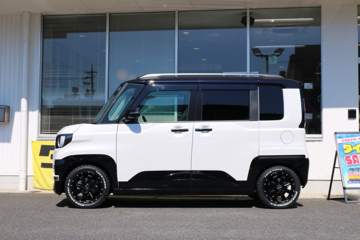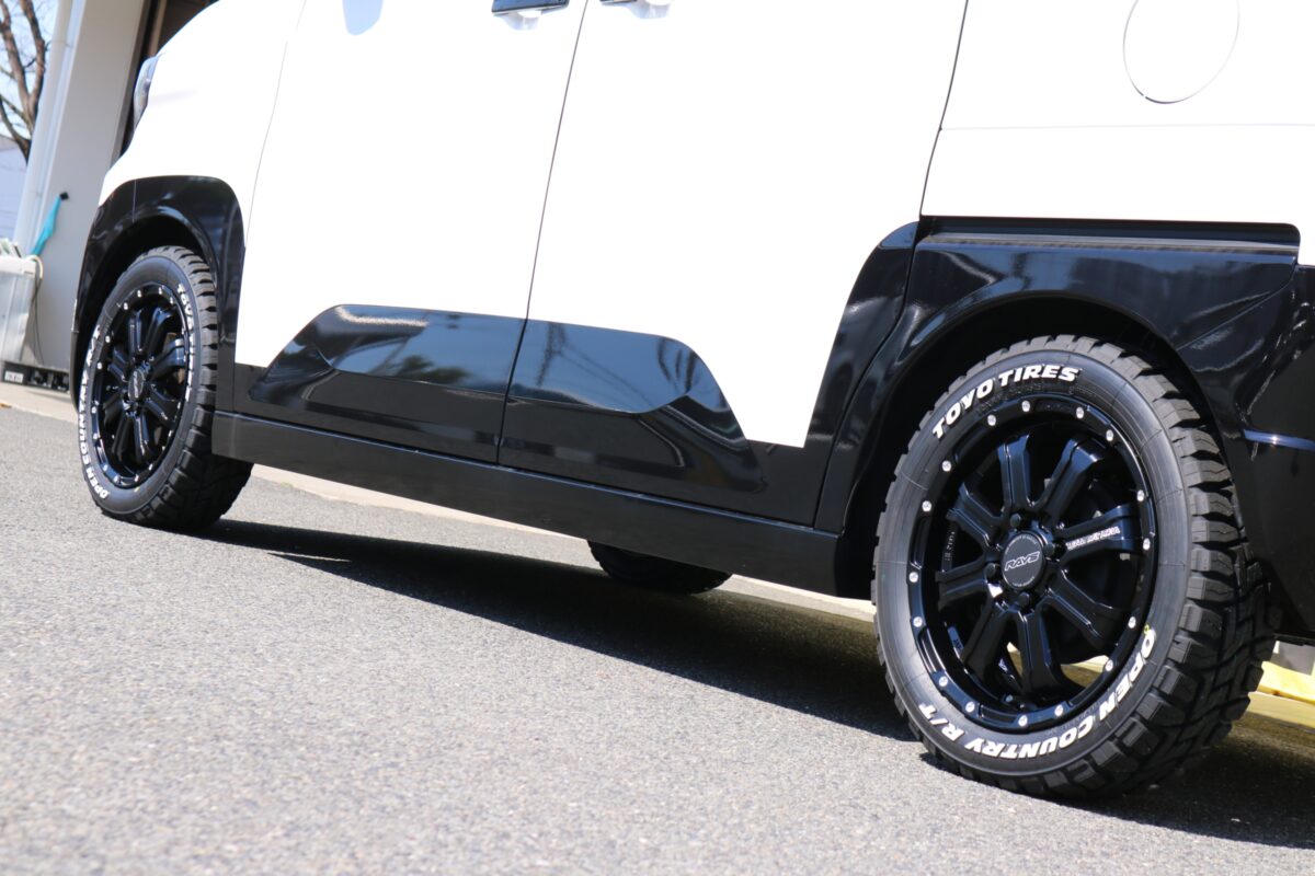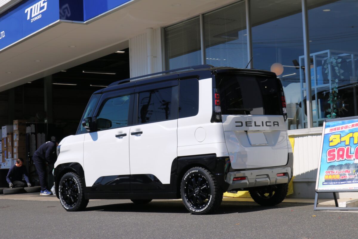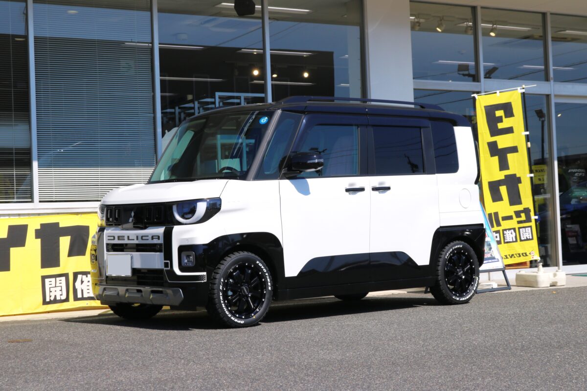 【デリカミニ】RAYSデイトナFDX-K装着!オプカンRTのホワイトレターで魅せる、アウトドア映え確実のオフ系カスタム!