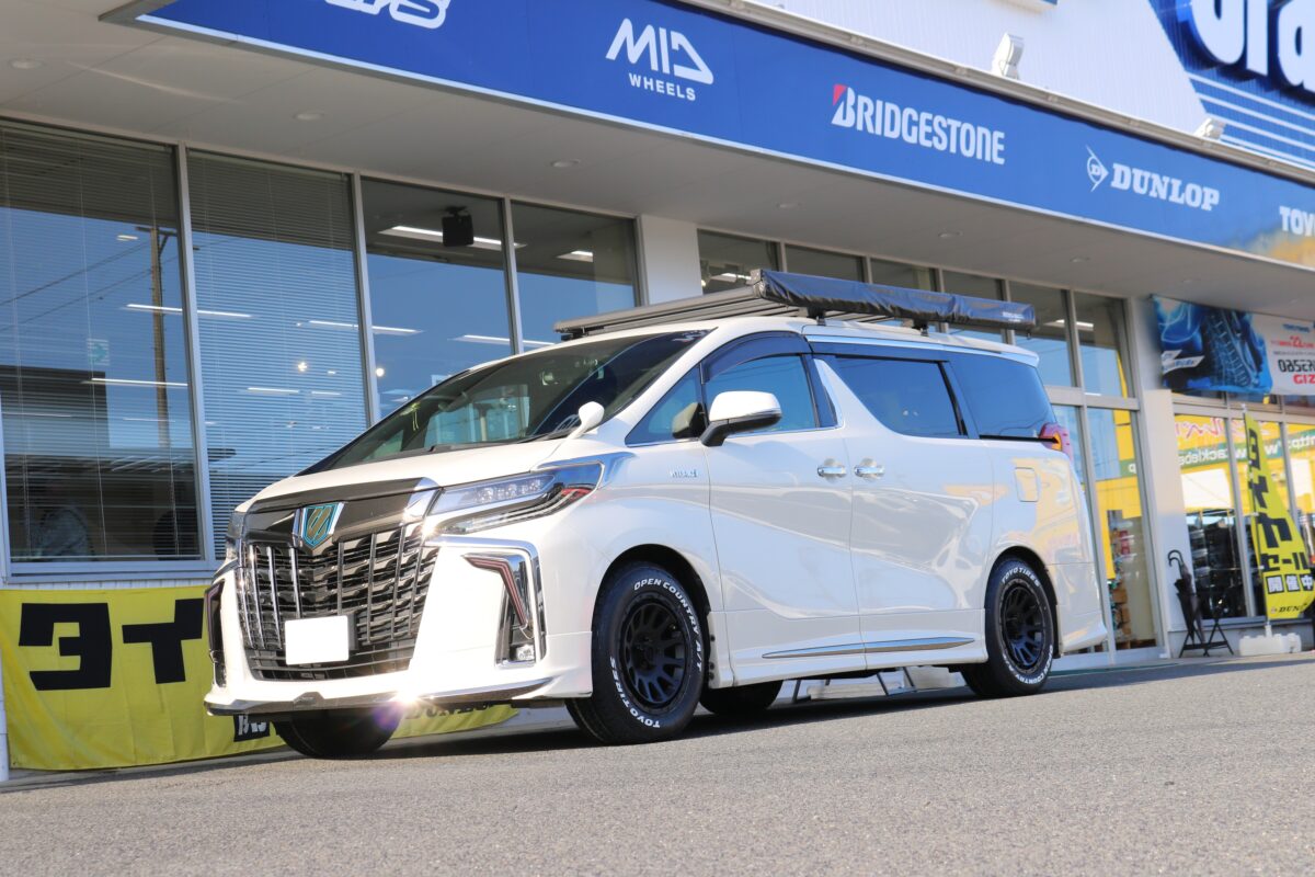 【30アルファード】アーバンオフ仕様へ劇的進化!デルタフォース オーバル×オプカンAT3の225/65R17で魅せる極太ホワイトレター!   ミニバンのご来店が多いクラフト一宮店です。 本日は、日本の誇る最高級ミニバン、30系アルファードのご紹介。   アルファードのカスタムといえば、 車高調でローダウンして20インチや21インチの大口径ホイールを履かせる 「ラグジュアリースタイル」が定番中の定番です。   しかし!今、その常識を覆す新しいムーブメントが巻き起こっています。 それが、あえてインチダウンしてゴツゴツタイヤを合わせる 「アーバンオフ仕様」、いわゆるオフ系仕様です。 今回は、そんなアウトドア感全開の最先端スタイルを、 大人気アイテムを使って仕上げさせていただきました。     選ばれたホイールはオフ系大本命「デルタフォース 」。 もはやオフ系カスタムの代名詞とも言える超人気モデル、 デルタフォース オーバルです。   特徴的なコンケイブ(逆反り)フェイスと、 タフなホールデザインが、 アルファードの巨大なボディに負けない圧倒的な存在感を放ちます。   カラーは一番人気の「マットブラック」。 煌びやかなアルファードのメッキパーツと、 艶消しブラックの無骨な足元のギャップがたまらなくカッコいいです。     そして、アーバンオフ仕様の要となるタイヤ選び。 こちらも妥協は一切ありません。   オンロードの快適性とオフロードの走破性を両立した、 最新のオールテレーンタイヤ 「オープンカントリーAT3」をチョイスしています。   サイズはあえての225/65R17。 純正タイヤよりも外径を少し大きく、 そして分厚くすることで、フェンダーの隙間を埋めつつ強烈な 「ムッチリ感」を生み出します。     さらに、サイドウォールに輝くホワイトレターが最高のアクセントに。 マットブラックのホイールとの相性は言うまでもなく宇宙一。   いかがでしょうか、この迫力。 高級ミニバンのアルファードが、 まるで道なき道を突き進む本格SUVのような タフなスタイルへと見事に変貌を遂げました。     デルタフォース オーバルの深いコンケイブと、 225/65R17の肉厚なタイヤがもたらす圧倒的なボリューム感。 そしてホワイトレターのポップな主張。   大口径のローダウンスタイルとは一味違う、 アウトドアの匂いがプンプンする「アーバンオフ仕様」の完成です。 これならキャンプ場や林道でもめちゃくちゃ映えます。 17インチへのインチダウンで、 乗り心地がマイルドになるという嬉しいメリットも御座います。     この度はご用命いただき、誠にありがとうございました。 アルファードの新しい可能性を引き出す、素晴らしいカスタムになりました。 ご家族でのアウトドアやドライブが、 より一層楽しくなること間違いなしです。     当店では、ミニバンのアーバンオフカスタムの実績も豊富にございます。 「どんなホイールが似合うの?」 「タイヤが干渉しないか心配…」 そんなお悩みをお持ちのオーナー様、ぜひ一度ご相談ください。 皆様のご来店、スタッフ一同心よりお待ちしております。   それではまた次回のブログもお楽しみに。 クラフト一宮店でした。   管理番号:0042603051011