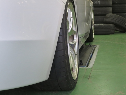 取り付け後はたまたまサンプルホイールがあったので仮で履かせて恒例の実車計測