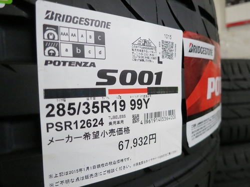 M5にはブリヂストン ポテンザS001を取り付け。リアは285の極太サイズ。