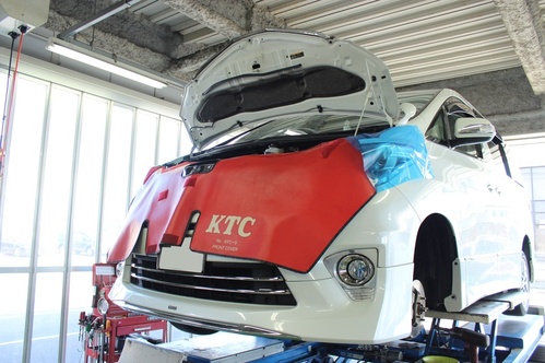 ローダウンにより狂ってしまったタイヤの向きを正しい方向を向くように調整します。
