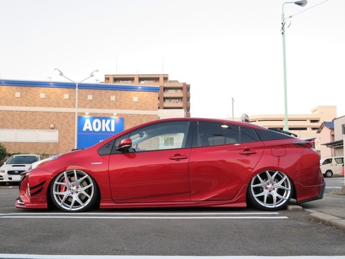 迫力のローダウン。50プリウスの複雑な造形にWALDエアロが綺麗にマッチングしてます