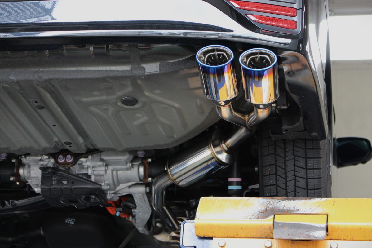 ブルーテールのグラデーションがされている右ダブル出しマフラー。スタイリッシュかつクールな仕上がりでヴォクシーのリアビューをオシャレに演出!!