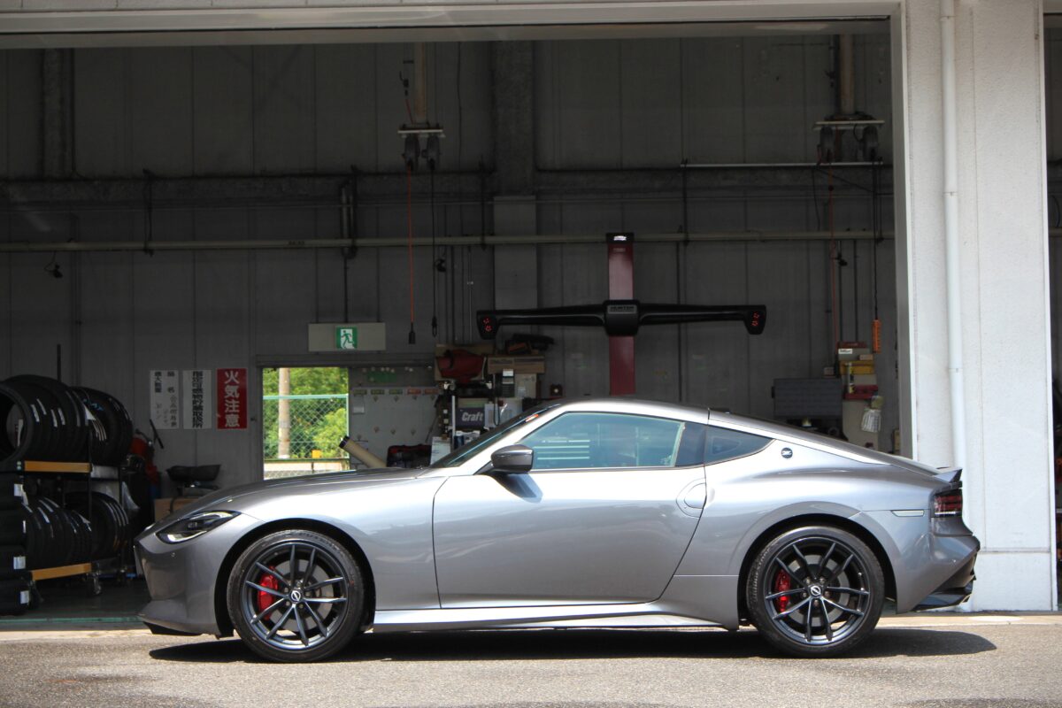 新型フェアレディZにグノーシスCVF オーダーインセットでツライチに!! クラフト長良店クマザキです!!   本日は新型フェアレディZをツライチにしようって事でオーナー様からご相談頂きました   当店RZ34は施工初めてになりますので仕上がりがとても楽しみ   コダワリのサイズ、カラーを実車測定を含め導きだしちゃいました👍   ホイールはワーク新作のグノーシスCVFで仕上げましたのでご紹介です 圧巻の11.0J   RZ34サイズになるとインセットもかなり深めになるので必然的にリムもかなり深くなります🔥   しかしめちゃくちゃ太い 11Jを飲み込む車種は限られあまり見る事が少なく新鮮な気分   ホイールディスクが見えないなんて最高な光景👍 RZ34の注意ポイントキャリパー!!   V6ツインターボを止めるべくビッグキャリパーが搭載されており取り付けれるホイールが限られます   なので今回CFVを装着するにあたってキャリパーの逃げがキモになってくるわけなんですギリクリアー   メーカー様の事前情報をもとにディスク選び&サイズ選びでしたが最後までヒヤヒヤ(笑)   でもクリアーした達成感は最高です👍 RZ34はエアセンサー装着車なのでここを忘れると大惨事に!!   事前にセンサー加工をしてもらいました🔥 完成!!   ホイールのテーマはオールブラック リムからディスクまでマットブラックで仕上げました   めっちゃカッコ良くないですか??   追加料金が発生しますが完成した時のドキドキ感は最高なんです👍 フロントは10J リア11J インセットはボクの味付けでツライチに完成させました👍   純正ポテンザを流用してのカスタムだったので引っ張り感もどんな感じに仕上がるか楽しみ   予想通りの仕上がりで最高🔥   その為のリム幅選び! 圧巻の仕上がり!   ココまでくるには実車測定など長旅でしたが待てば待った分愛着もわくってもんですね👍   ボクは待てないタイプですぐ付けたいタイプでしたが今履いてるホイールはメチャクチャ待ちました(笑)   なのでオーナー様の気持ちがメチャクチャ分かってしまいボクも嬉しかったです 個人的にRZ34の32を彷彿させるデザインでめっちゃ大好き!   まだまだカスタム事例もそんなに多くないお車なので個人的にはマルチピースでカスタムしたい オーナー様この度は有難うございました!!   またのご来店おまちしております👍   ではクマザキでした!