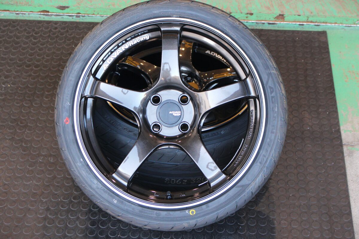 ホイールはスポーツカスタム王道の5本スポークにコンケイブフェイスを組み合わせた"ADVAN Racing TC-4"を装着します。