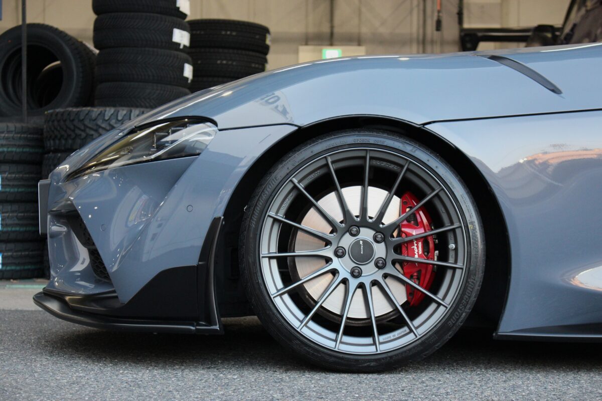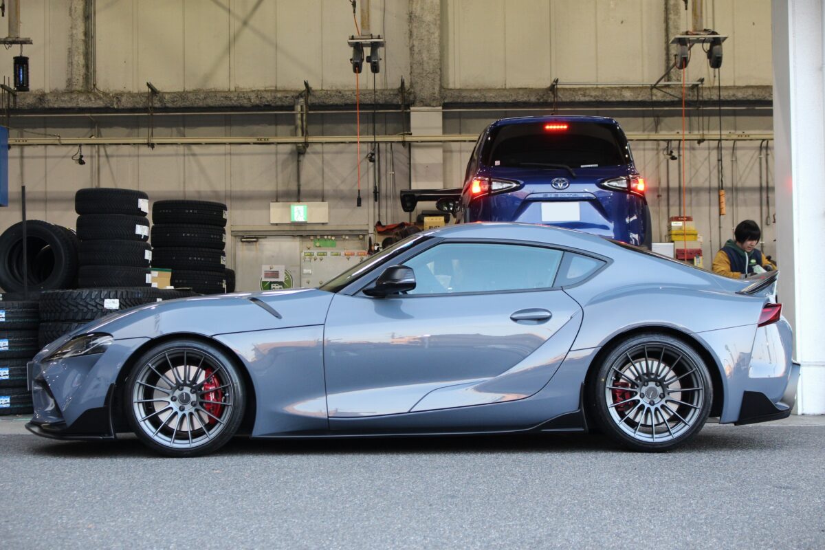 アライメントを行った後に試走を行い、ハンドルセンターのズレ等がないことを確認すれば、スポーツカーらしく低車高でコンケイブフェイスが際立つスタイルとなったGRスープラの完成デス(≧◇≦)