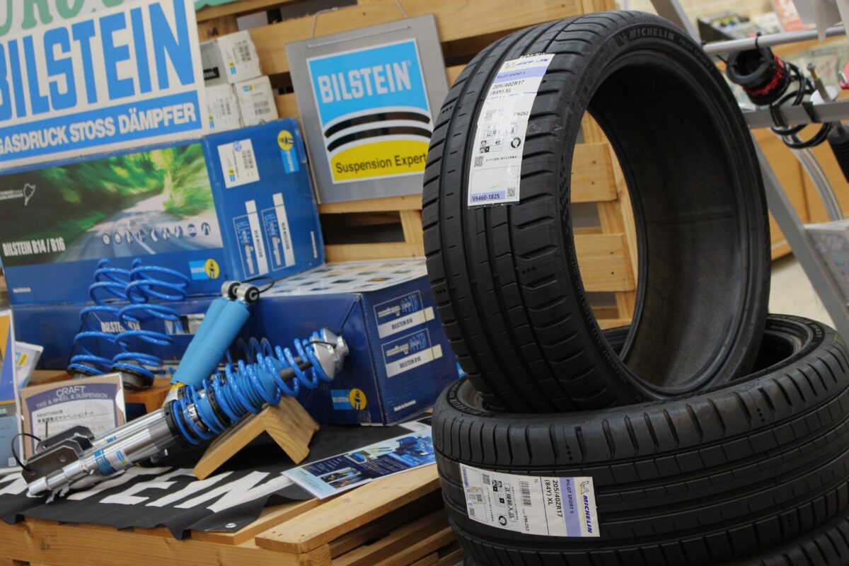 「快適性」に重きを置いて開発されたBILSTEINのB14車高調コンフォートスペックの在庫も1台分ございます。タイミングが合えば車高調取付けから新しいホイールセットに交換まで即納することも可能ですよ👍