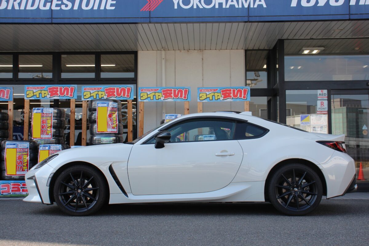 リムを確保しつつ、オプションのゴールドピアスボルトがキラッと光るGR86の完成デスヽ(^o^)丿