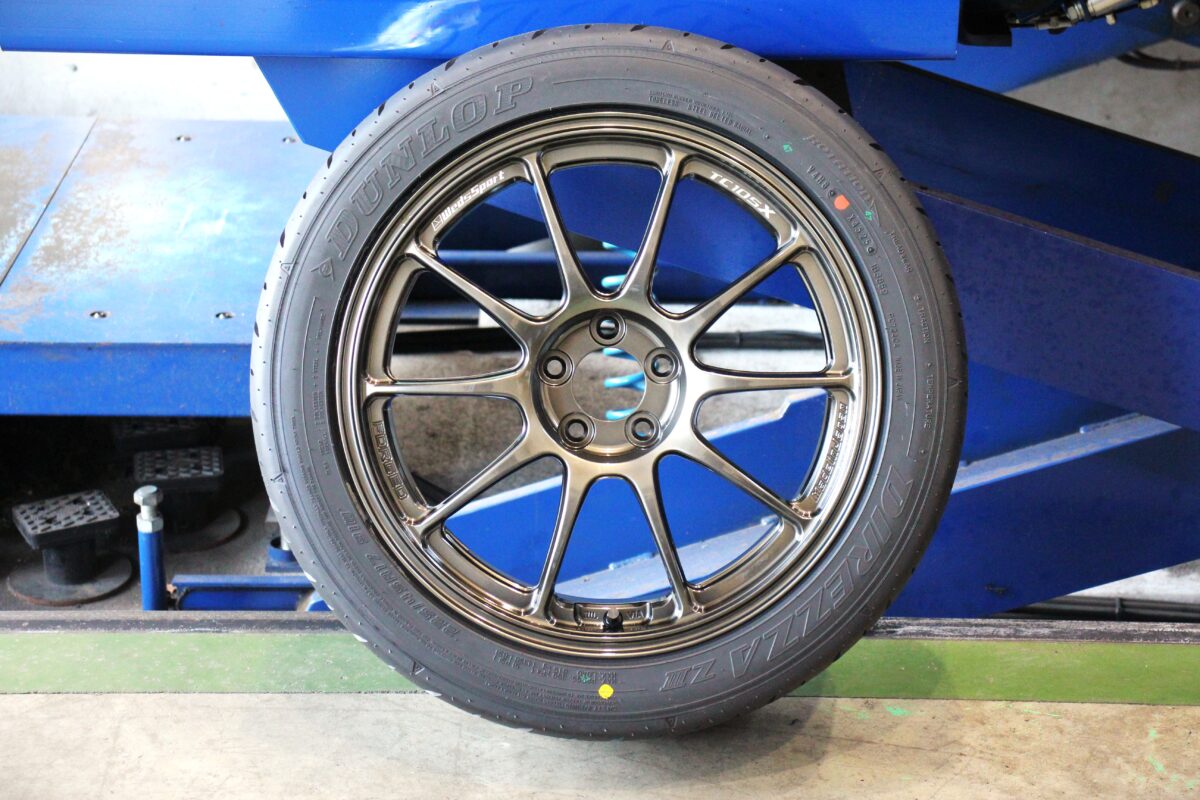 ダンロップのハイグリップスポーツタイヤ"ディレッツァZ3"を組み合わせます。クルマが持つポテンシャルをしっかり発揮するためにはタイヤ選びも重要です。