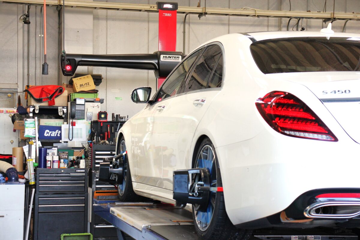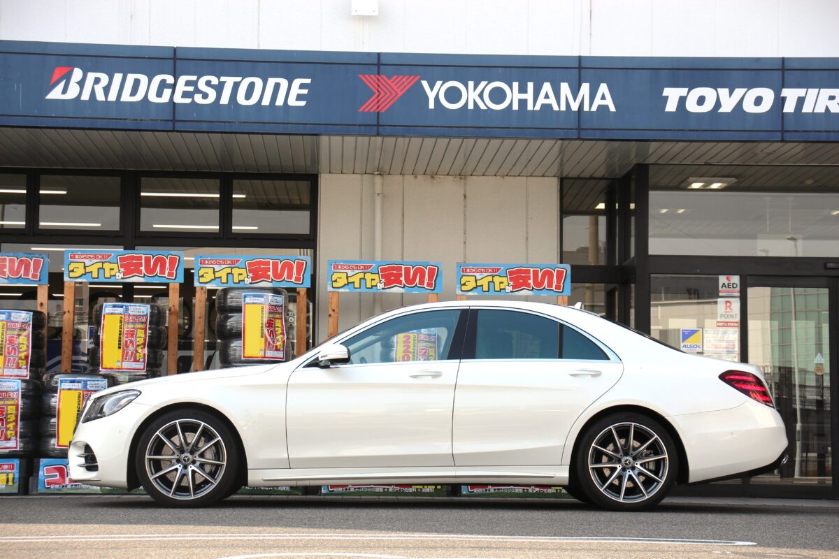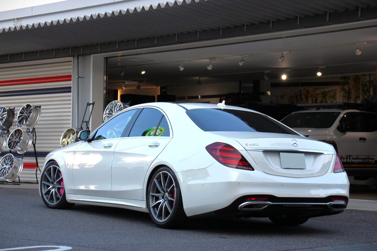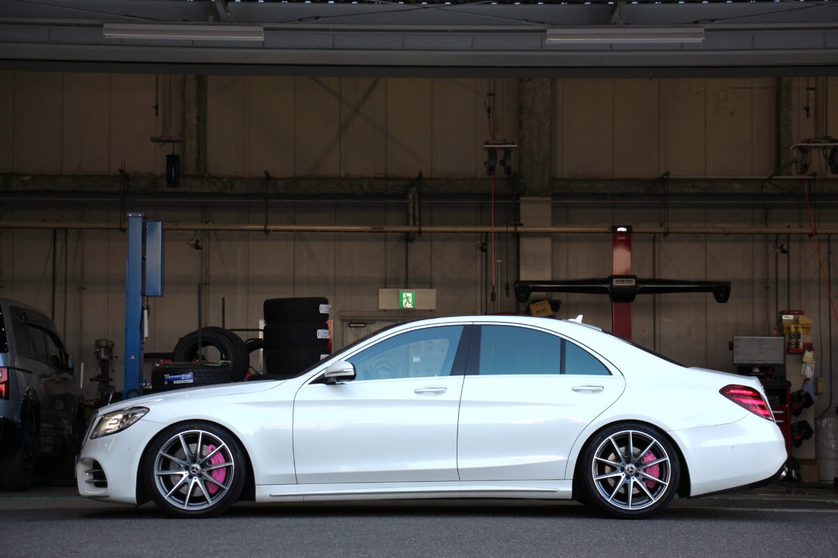 本日のご紹介はSクラスW223のタイヤ交換&ローダウン。