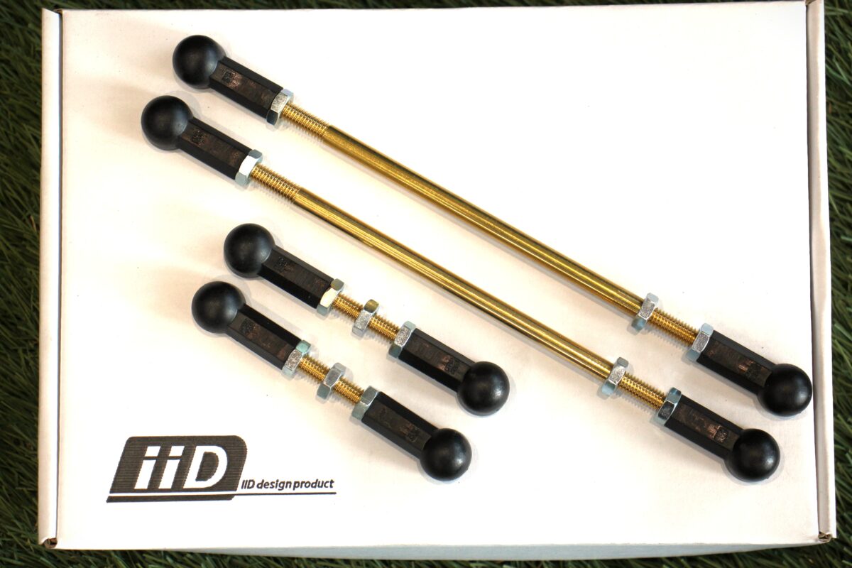 ローダウンさせるためのとあるキットがこちら、"iiD ロワリングキット"車高センサーと足回りと繋ぐリンク(棒)を長さ調整が可能なキットに交換することにより、
