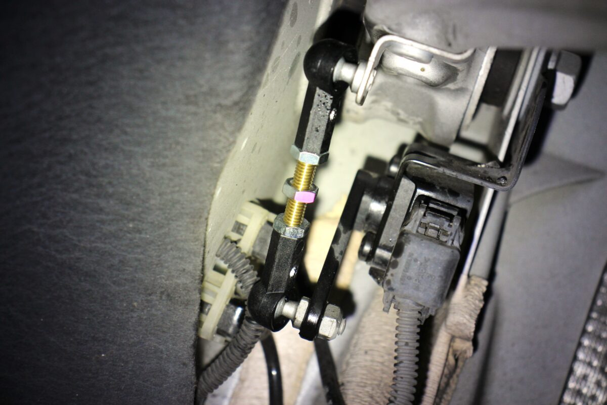 ネジ部分を弄って全長を変えることで車高センサーに作用して、車高全体が変化します。