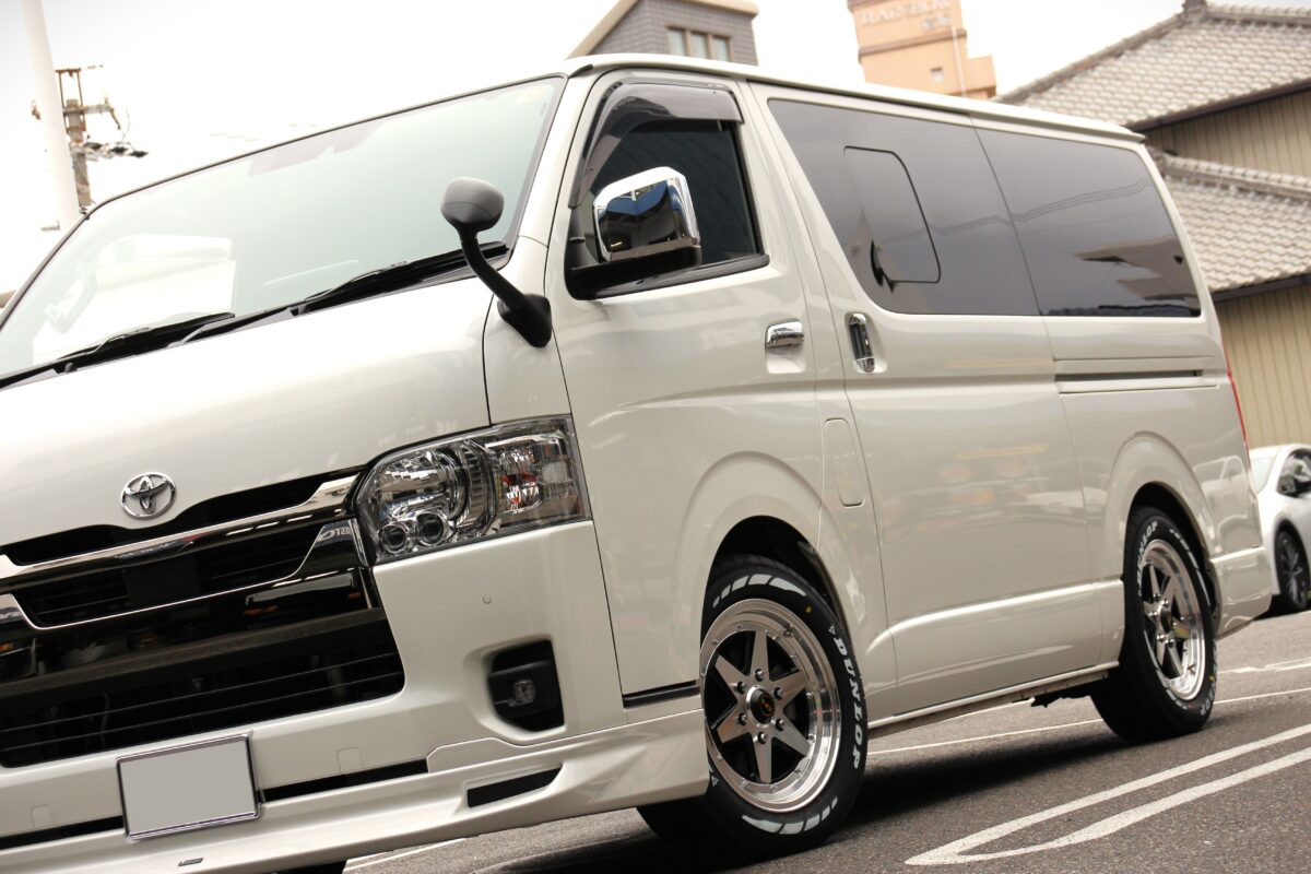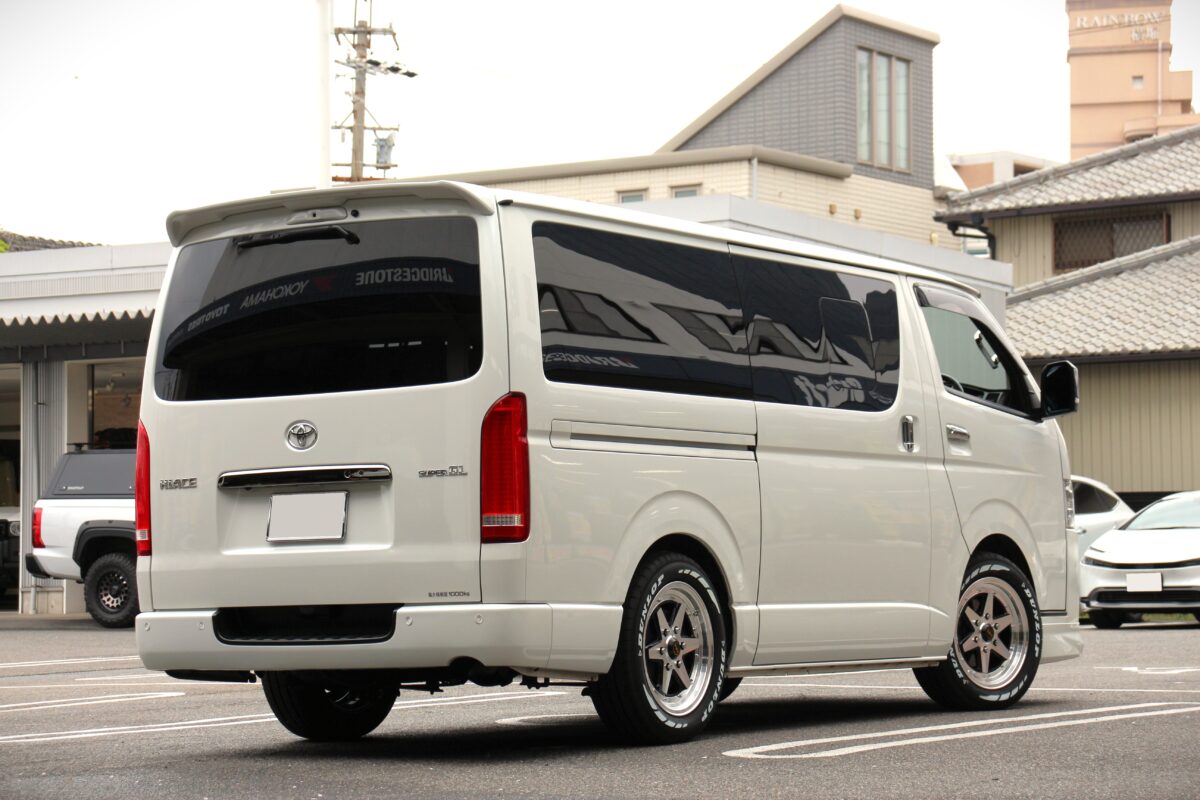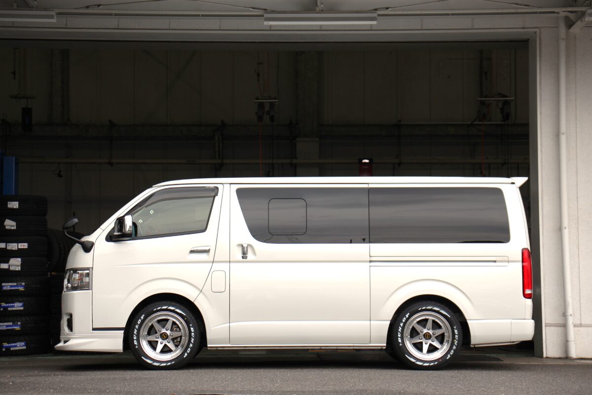 ホワイトレターでドレスアップ!ハイエースにナイトロパワー ジャベリン+ヨコハマ パラダPA03でカスタム!