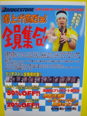 6/1からBRIDGESTONEタイヤが値上げします[E:eye]