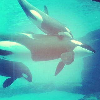 北館から入場したんですが、まず目の前に現れたのはシャチの水槽![]()