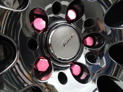 ホイールはブラック一色でも、ナットのレッドカラーや、