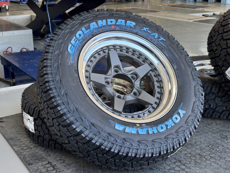 ゴツゴツしたオフロード系タイヤはLT規格(ライトトラック規格)の設定が多く、強固な故の重量増を避けられないケースが多い中、今回使用したヨコハマタイヤ ジオランダーX-ATの225/70R16はPC規格(パッセンジャーカー規格)。