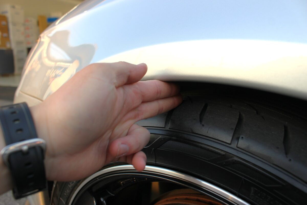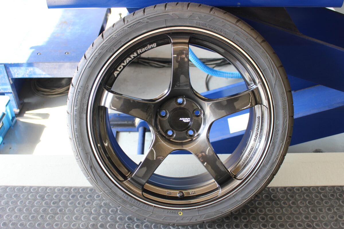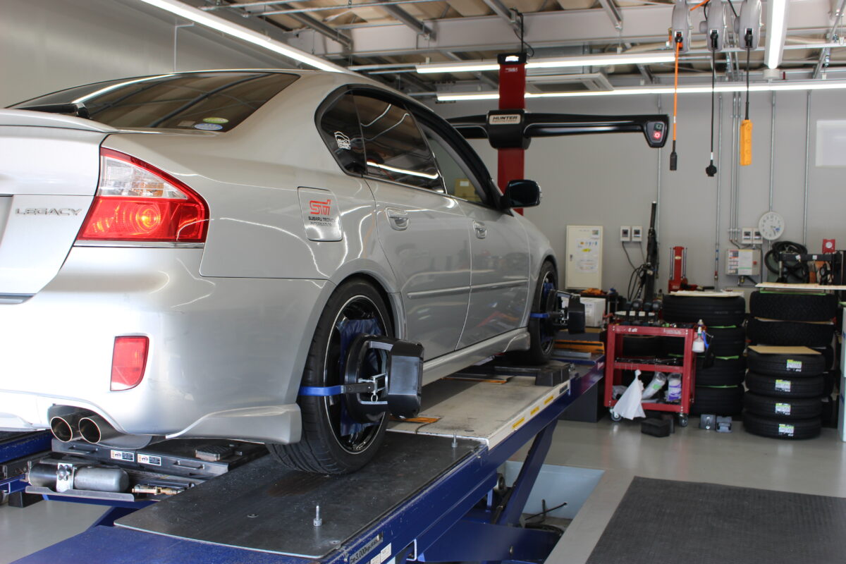 タイヤ・ホイールを交換して車高調を装着したらアライメント調整をして直進性とハンドルセンターを試走にて確認して終了となります。