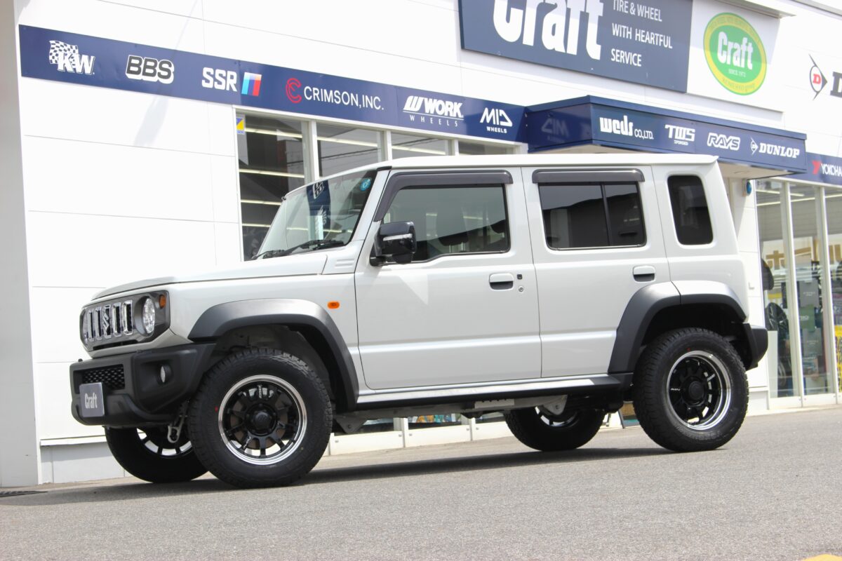 【ジムニーノマド】WORKマイスターL1装着!マットブラック×オープンカントリーAT3で魅せる、唯一無二のネオクラシック。   本日は、入庫した瞬間にピットの空気が変わるほど旬な一台、 ジムニーノマド(Nomad)のご紹介です!   4ドアといった居住性をも纏ったノマド。 オフロードの定番といったイメージが強いこの車ですが、 今回はオーナー様のハイセンスなこだわりで 「カッコいい」「渋い」要素をより強くプラスした 大人の本気カスタムを施させていただきました。     選ばれたホイールは、なんと「WORK マイスターL1」。 四駆用ホイールの定番をあえて外し、スポーツホイールの王道を履かせる。 このセンス、脱帽です。   車好きなら誰もが憧れる「マイスターL1」。 普段はスポーツカーやドリフト車の足元を支えるこのレーシングホイールを、 あえてジムニーノマドにインストールします。     この組み合わせ、実は相性抜群なんです。 マイスター特有の段付きリム(ステップリム)と、 メカニカルな造形が、ノマドのクラシカルな雰囲気に 「現代的なスパイス」を加えてくれます。 カラーは「マットブラック」をチョイス。 足元を黒く引き締めることで、 ボディカラーの美しさを際立たせつつ、重厚感を演出しました。     そして、タイヤ選びにも妥協はありません。 只今大ブレイク中のトーヨータイヤ、 「オープンカントリーAT3」を組み合わせました。   このタイヤの最大の魅力は、 ゴツゴツとしたワイルドな見た目でありながら、 静かなオフロードタイヤであること。     ブロックタイヤ特有の「ゴーッ」という ロードノイズが驚くほど抑えられており、 街乗りメインのユーザー様から絶大な支持を得ています。   さらに、サイドの「ホワイトレター」が 最高のアクティブ感をプラス。 マットブラックのホイールに白文字が映えないわけがありません。 ジムニーノマドの持つ「古き良きスタイル」と、 WORK マイスターL1の「走りの機能美」が見事に融合しました。     定番のオフロードホイールでは出せない、 マイスターL1ならではの深リム感と高級感。 それが、ノマドの個性をより一層引き立てています。 「見た目だけじゃない、走りも忘れていないぞ」 というオーナー様の主張が聞こえてきそうな仕上がりです。   この度はご用命いただき、誠にありがとうございました。 ジムニーノマドにマイスターL1。 この組み合わせは、街中でも、オフロードでも、 注目の的になること間違いなしです。 当店では、ジムニー・ジムニーシエラのカスタム実績が豊富にございます。     「人と同じは嫌だ」 「スポーツホイールを履かせたい」 そんなこだわり派のオーナー様、ぜひ一度ご相談ください。   「静かなオフロードタイヤが欲しい」 といった機能面でのご相談も大歓迎です。 皆様のご来店、心よりお待ちしております。 それではまた次回のブログもお楽しみに。 クラフト一宮店でした。