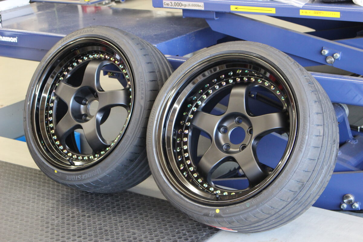 RZ34のフェンダーラインに合わせ込んだ前後違いのサイズセッティング。