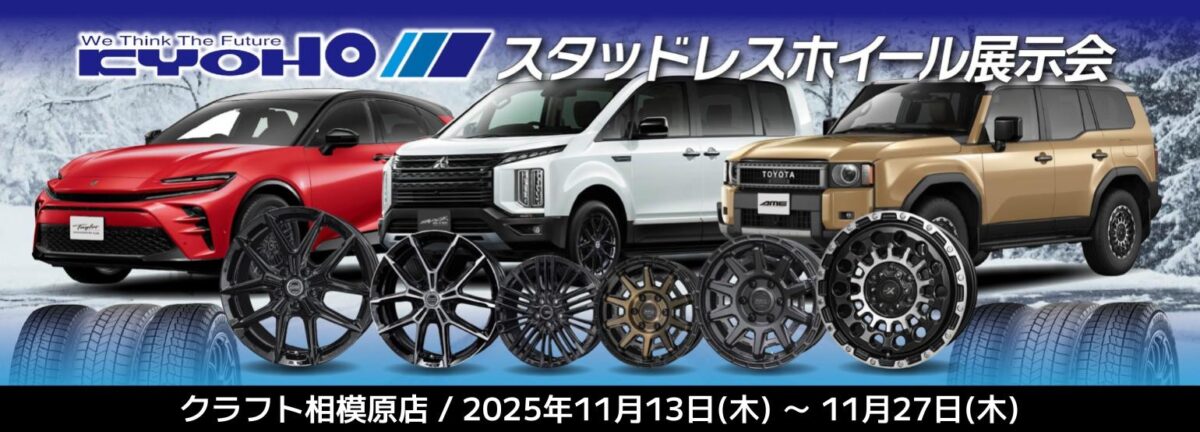 クラフト相模原店では2025年11月13日(木)~27日(木)の期間で共豊スタッドレスホイール展示会を開催します。