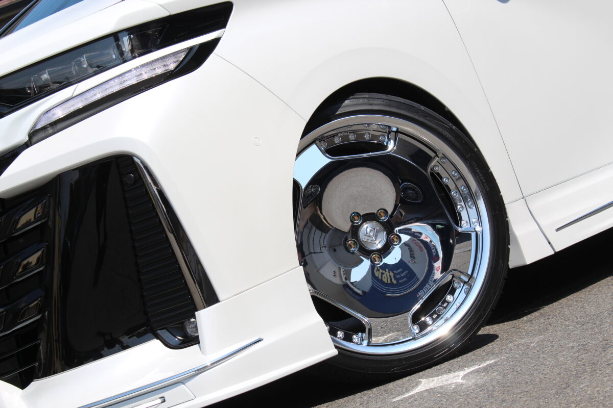 カスタムのご相談が絶えない高級ミニバン 【TOYOTA 40系アルファード】 純正車高の21インチカスタムのご相談も多いという事で 本日はWORKのマルチピースホイールを装着事例のご紹介!!   ■WORK シュヴァート・ブルネン 【シュヴァートシリーズ】は伝統ある2ピースホイールブランドで 当店でもお問い合わせの多いシリーズです。 中でもブルネンはシャープなストレートスポークデザインと 柔らかい曲線美のデザインで織りなすダブルデザイン   カラーはブリリアントシルバーブラック ハイパー色ならではの陰影が曲線美のあるシルエットを 際立出せてくれるカラー。 人気色であるプラチナホワイトパールマイカやブラックのどちらに合わせても、 メッキモールやグリルとの相性が計算し尽くされたかのようにマッチします。   スポーク中間からセンターに落ち込むデザインは ブルネンの名前の由来でもある、噴水をイメージされています。 シュヴァートシリーズが得意とする高低差のある デザインが立体造形に拍車をかけます。   ■YOKOHAMA AVID ENVigor ドレスアップタイヤで比較的クッション性があり 回転方向があるタイプで排水性もしっかり考慮しているモデル。 大口径カスタムをする際に良くオーダー頂いているアイテムです。 特徴的なパターンはドレスアップとしても際立つ存在感を与えます。   WHEEL:WORK  シュヴァート・ブルネン TIRE:YOKOHAMA AVID Envigor SIZE:21インチ   ナットはワークオリジナルアイテムの LOCK NUT SETを装着させていただきました ブラックとクロームの2カラーから選択が可能 あくまでも主役はホイール、ホイールカラーを引き立てるブラックを選択。 ナットの天面にはWORKのロゴが彫られているのが ワンポイントアクセントとしてGood!   今回取付をしたシュヴァート・ブルネンは ミリ単位オーダーが可能な2ピースホイール。 定番サイズより少し攻めたい、でも攻めすぎたくないという オーナー様のご意向に合わせてサイズ選定をさせていただいております。 これは2ピースホイールの特権! マルチピースホイール特有のリムの輝きが、 アルファードのメッキパーツと見事に調和し 40アルファードの持つ高級感をさらに引き出してくれます。   サイドビューは、クルマの印象をづける最も重要なアングル 面積の多いサイドパネルに対し、奥行きのあるリム有りホイールを合わせることで、 サイドビューに「踏ん張り感」が生まれます。 そして、ブルネンのシャープで細身なスポークが足元をスマートに見せます。 21インチの迫力とシュヴァートシリーズのデザイン性があれば、 ここまで「カタチ」になります。   この度はクラフト知立店をご利用いただきありがとうございました またのご利用お待ちしております カスタマイズの実績豊富なクラフト知立店 40アルファード・ヴェルファイアのご相談はクラフト知立店まで!!   管理番号:0082604041016