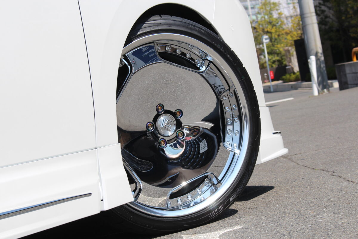 こんにちは中島です! 本日もトヨタ40系ヴェルファイアのインチアップをご紹介です(^^) こちらのお車には超拘りの鍛造22インチホイールを装着させていただきました♪   装着ホイールはWORK LSアダマス。 昨年登場したLSシリーズ最新モデルは大口径ディッシュデザイン。 力強いデザイン感に加え、初代LSキャップをオマージュしたセンターキャップが採用され どこか懐かしいレトロな雰囲気も漂うモデルとなります(^^)   今回はディッシュ+メッキという組み合わせに拘り こちらのホイールを選んでいただきました♪ 最近ではディッシュ系のホイールが徐々に増えつつありますが クロームメッキ仕上げは他にはない、唯一無二なホイール。 オーナー様の拘りが感じられる一品となります☆   サイズは大口径22インチ! 40系向けでは普通に装着できる最大サイズとなります。 22インチ・フルリバースのディッシュホイールは迫力満点! ROWENさんのフルエアロ装着で、ド派手なボディに仕上がっていますが この迫力あるホイールデザインは相性抜群となっています(^^)   3ピース構造ということで、インセットやJ数との組み合わせでリムの深さが変化します。 それにより、ホイール全体の印象も大きく変わってきます。 今回は一般的な40系向けのサイズよりもかなり攻めたサイズをチョイス。 それにより、マルチピースならではの深リム仕様に仕上げています♪   このサイズを装着するにはローダウンの他にアライメントでの微調整も必須。 今回はホイール装着時にアライメント調整も施工させていただき イイ感じにフェンダーに収めさせていただきました☆   デザイン・カラー・サイズと全てに拘ったホイールチョイス。 超拘り仕様の40系ヴェルファイアの完成です(^^)   今回のカスタムスペック ホイール:WORK LSアダマス (F/R)9.0J-22インチ カラー:スーパークロームメッキ タイヤ:ニットー NT555G2 (F/R)245/35R22   今回も当店をご利用いただきありがとうございます(^^)   相模原店イベント情報はこちら↓↓↓ 管理番号:0422603241004