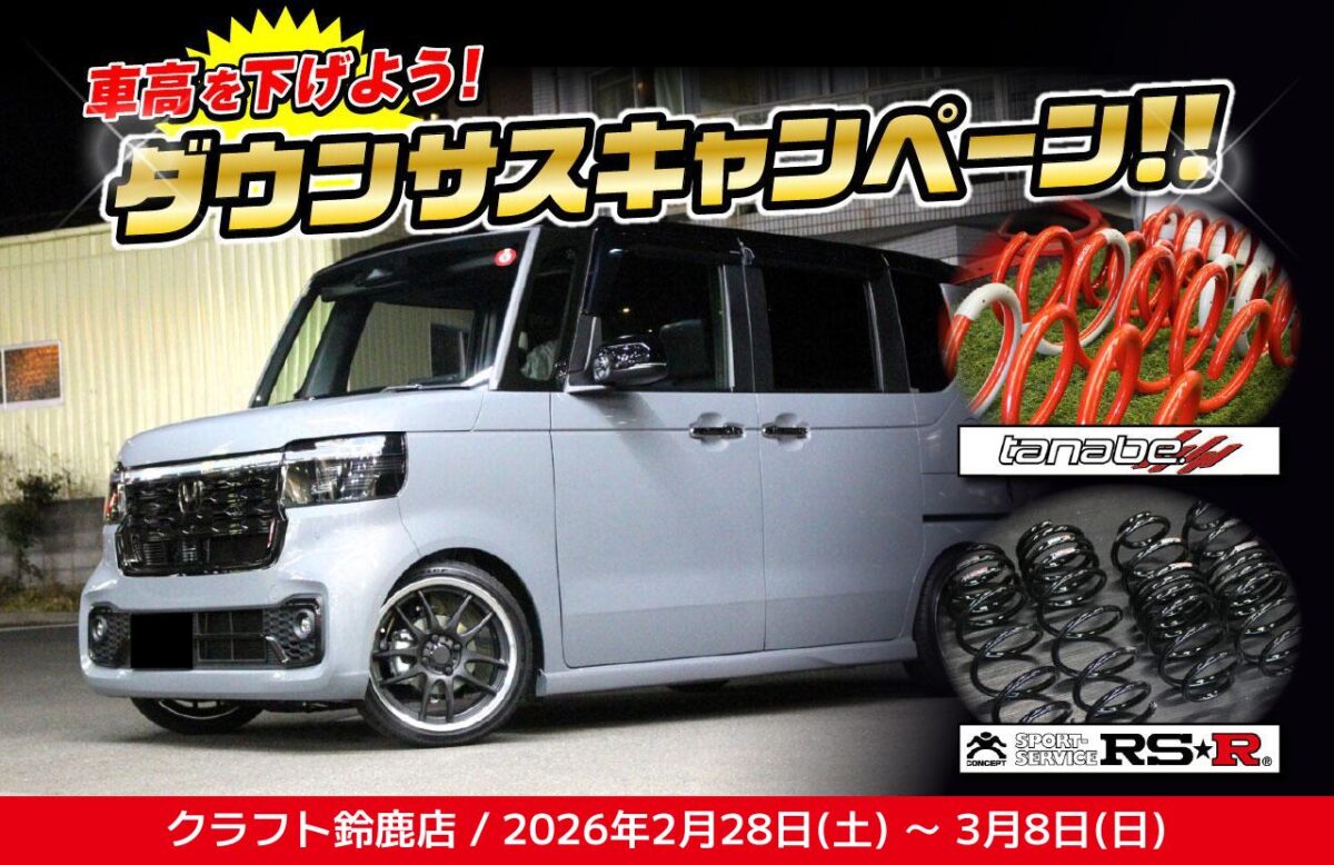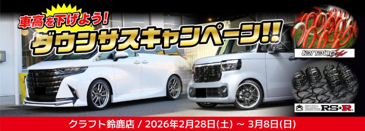 イベント期間中は、人気メーカーの「RS-R」や「タナベ」のダウンサスでのカスタムを大応援!