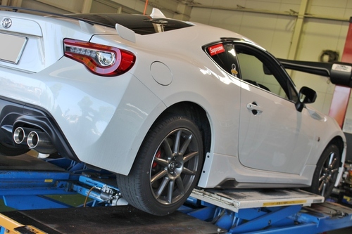 同時に車高の微調整を行い、待ちに待ったホイールの取り付け。