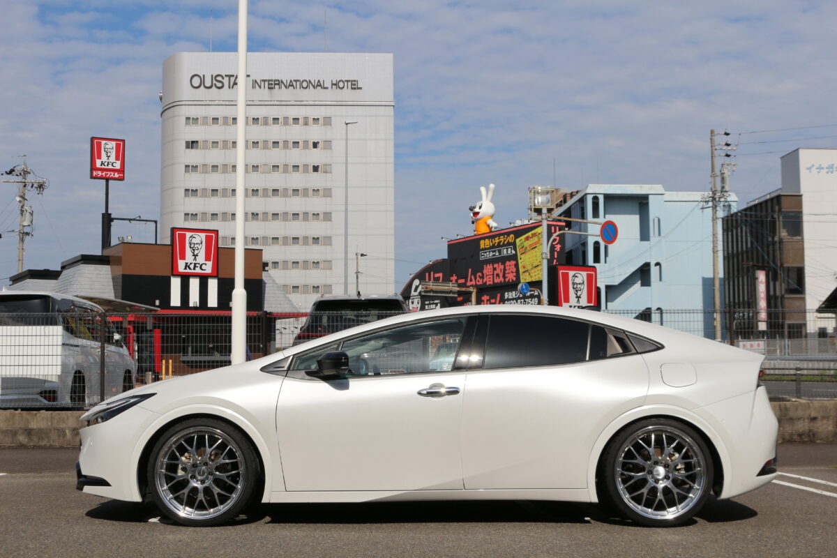 60プリウスはやっぱりローフォルムで20インチが似合う!! お待たせしました!今回は、多治見店でも年間通して来店の多いプリウス!   新型60系のポテンシャルを限界まで引き出した一台が、ここに誕生しました 今日のテーマは、誰もが目指す「完璧すぎる足元メイク」です。 ローダウンで既にキマっているボディに、オーナー様が選ばれたのは、WORKのグノーシスRMX 20インチ!   深く輝くバフフィニッシュの存在感が、もう桁違いですよ! このカラー本当にいいカラーレギュラーカラーの中でも値が張るカラーですがやってやった感が伝わります   そして、今回のカスタム醍醐味は、そのサイズにあります。 我々クラフト多治見が魂を込めて実現したのが、フロント・リヤともに9.0Jという、アグレッシブなワイドリムなんです!   「60プリウスで9.0Jをパツパツのツライチで収める」、これは正直、難易度MAXの挑戦でした ツライチを目指したいそんな悩みを解決すべく当店の実車計測とミリ単位の計算が活きてくるんです。   「どうせやるなら、誰も真似できないセッティングを!」   この想いを胸に、サスペンションへの干渉をギリギリでかわし、迫力満点のツライチをトラブルなくクリアーしました! この結果こそが、ワタクシクマザキが持つ経験と技術の底力です。   見てください、この仕上がり!ワイドリムが実現したリムの深さと、バフフィニッシュの輝きが、ローダウンした60プリウスのオーラを何倍にも引き上げています。 「この車、ただ者じゃない」って誰でも感じますよね!   愛車のカスタム、想像の中で終わらせていませんか?  その想像実現させませんか??   「お客様の理想を形にする」のが、我々クラフト多治見の使命です。   ジャンジャンご相談くださいね!待ってます!!    管理番号0322604181003