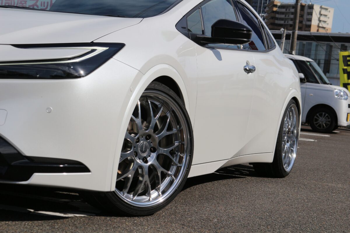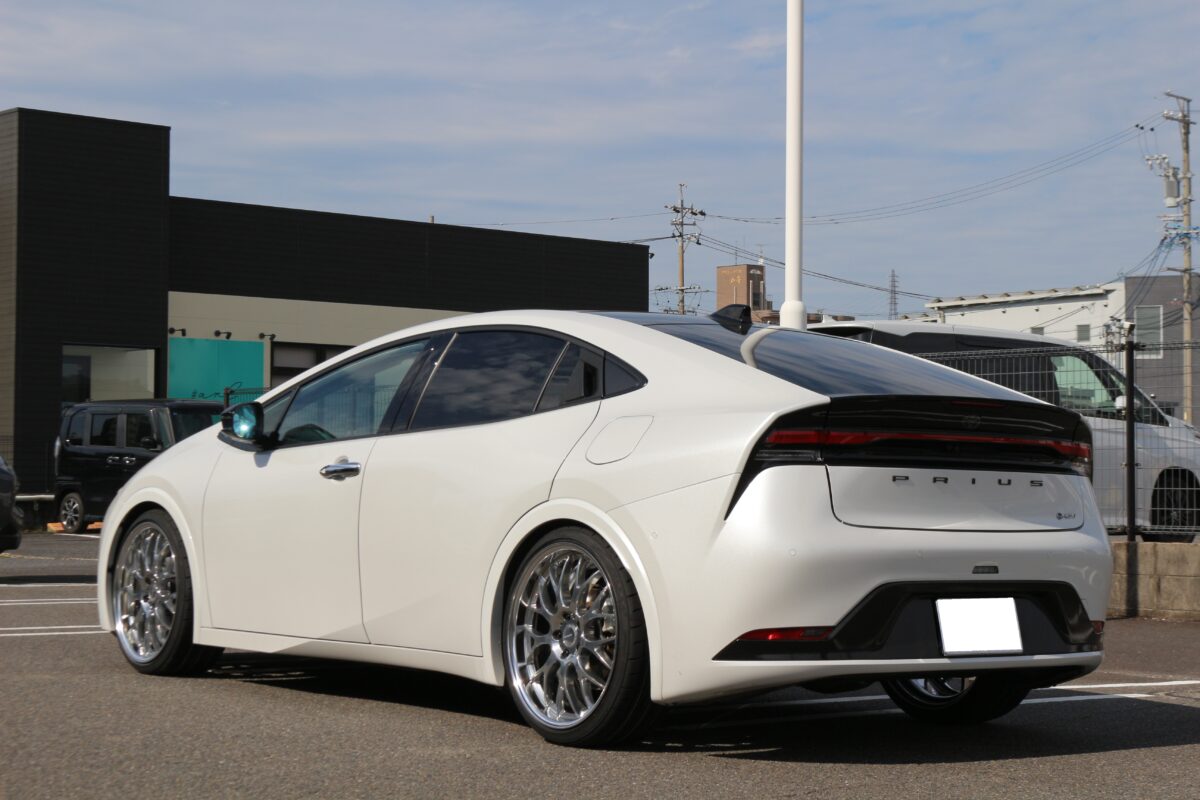 50系プリウス 60ミリオーバーの深リムホイール装着で一気にカスタム!!
