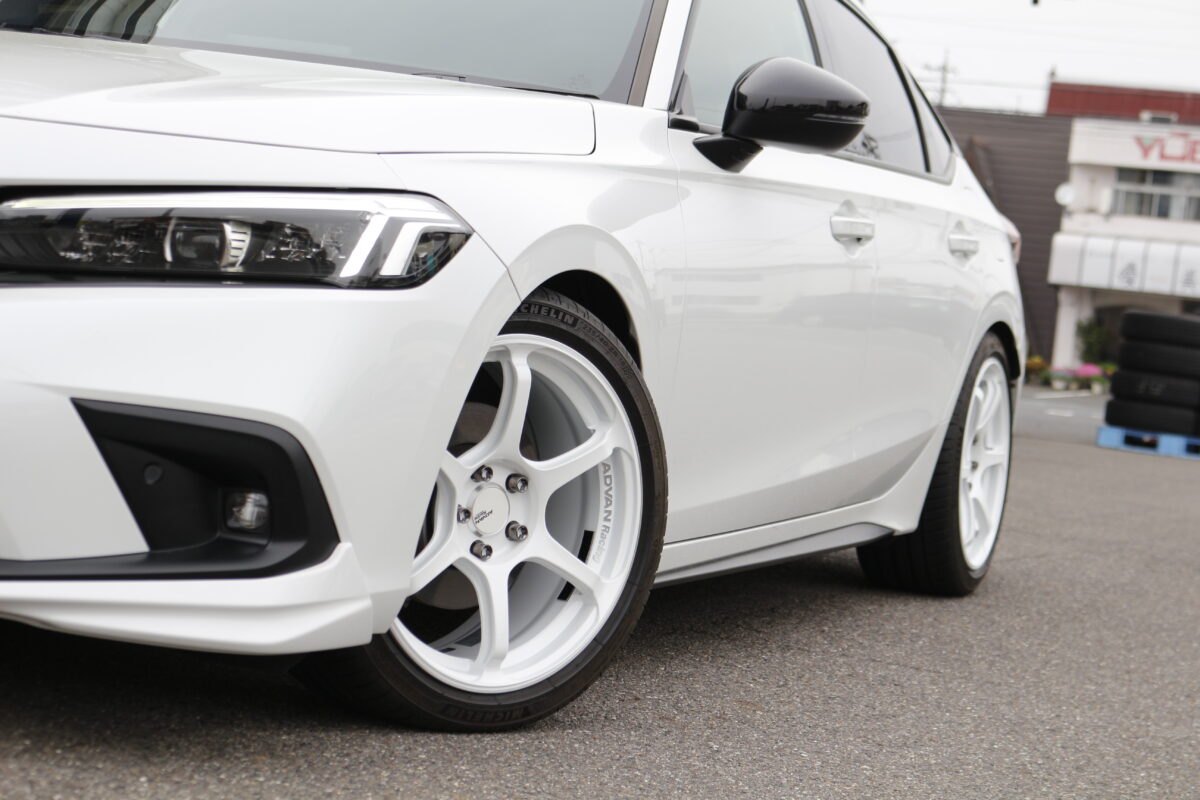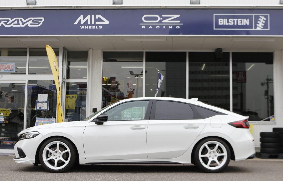 FL4シビックのフェンダーラインとタイヤ・ホイールのバランスをミリ単位で追い込み、車高とインセットを緻密に調整することで、