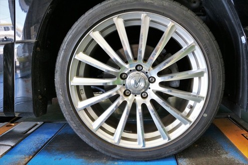 センターキャップぎりぎりからリムまで目一杯伸びたスポークが