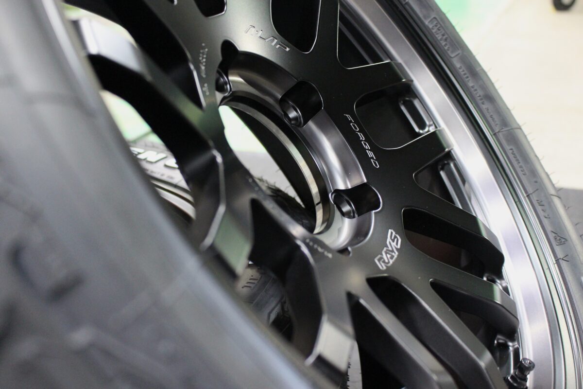RAYSの特許技術でもある「A.M.T.」にて繊細に彫り込んだマシニングの部分もすべてをマットブラッククリア仕上げとなっております。