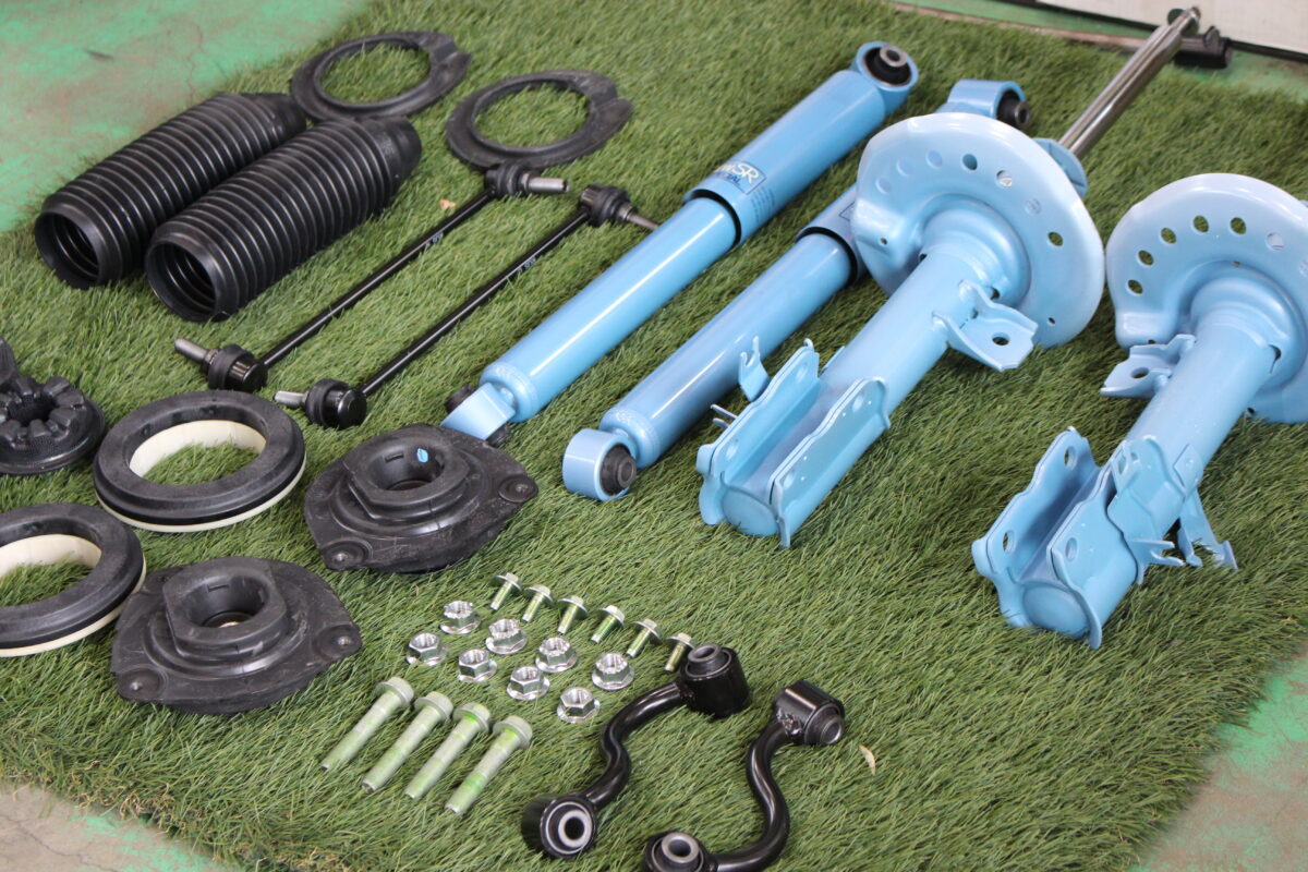 加えて経年劣化しやすいスタビリンク、ベアリング、ゴム製の部品、ボルト類もまとめて交換です