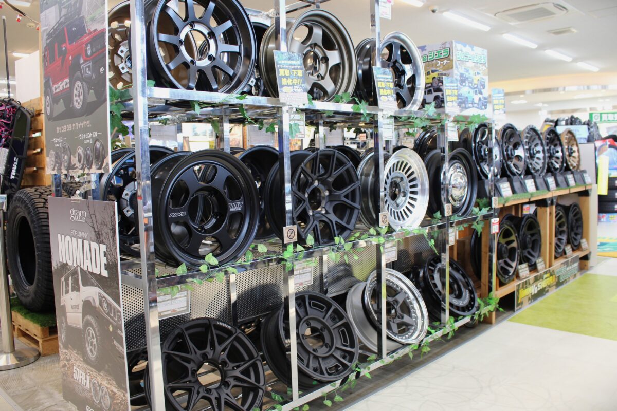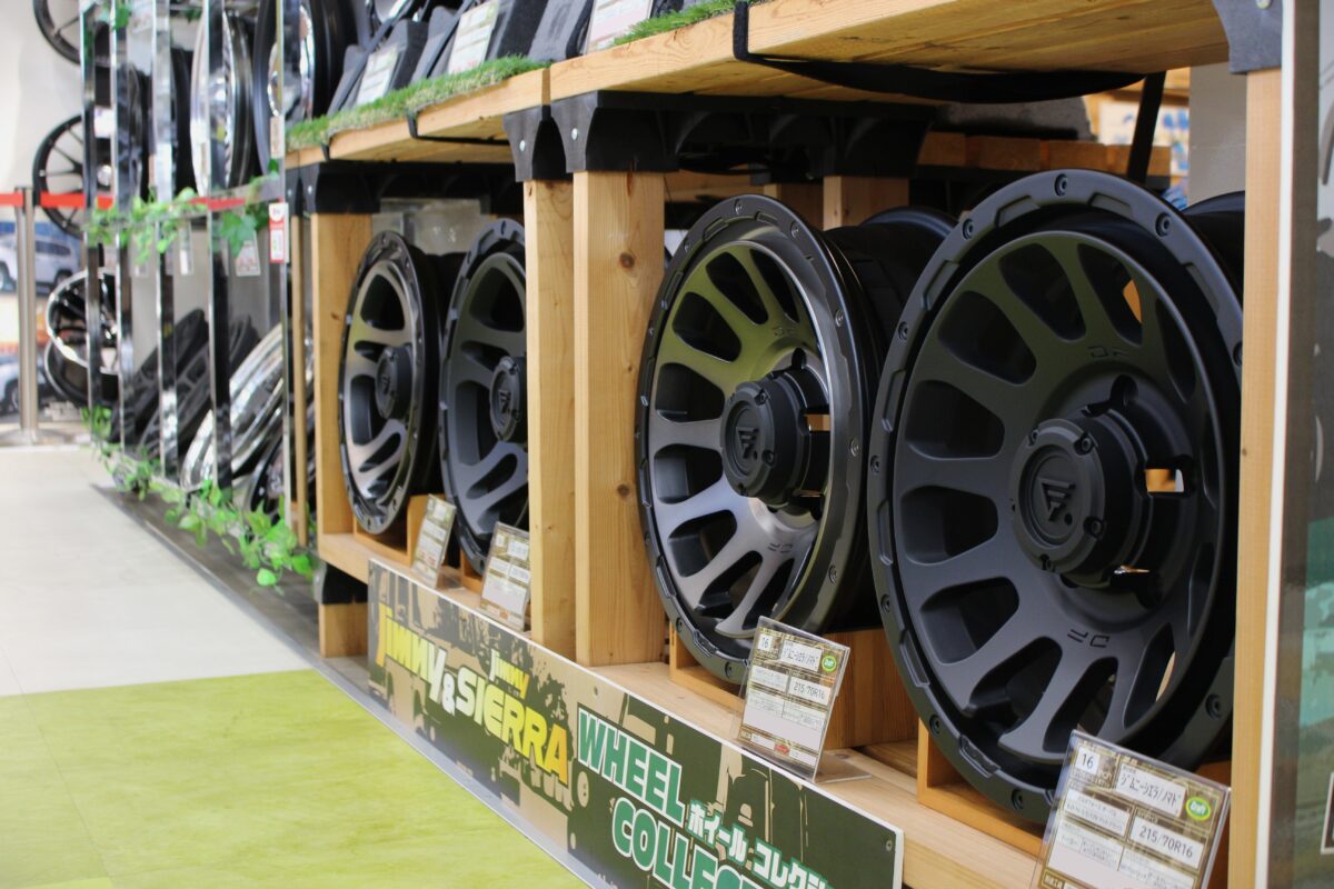 ジムニー用のホイールも展示しておりますので、ジムニー3兄弟の人気ホイールが一気に見比べることが出来ます(*'▽')