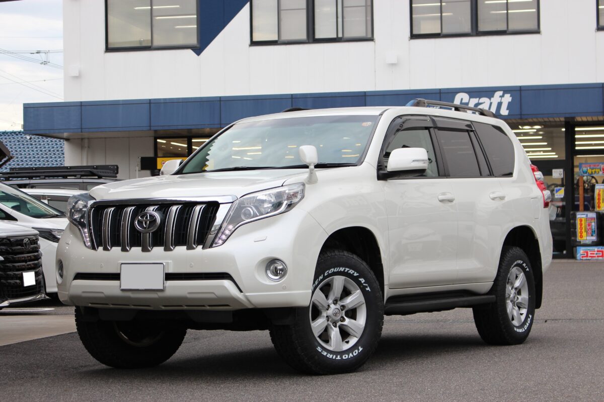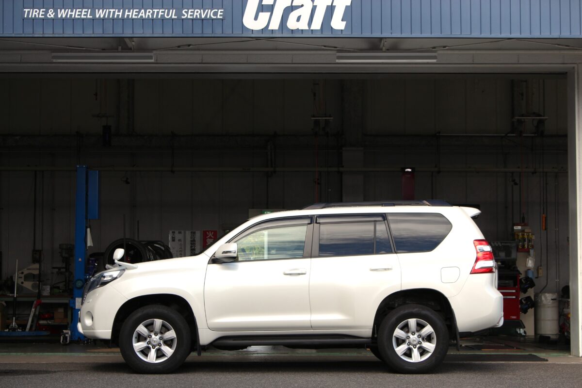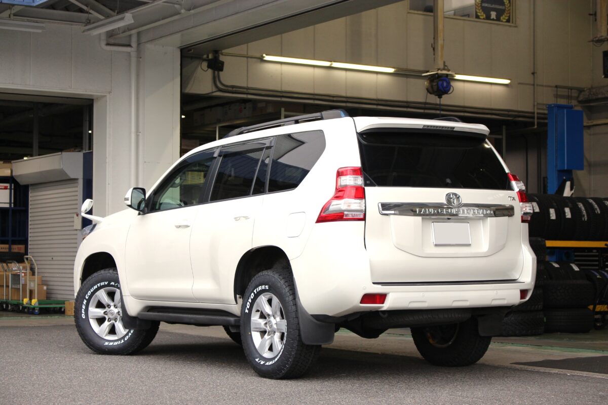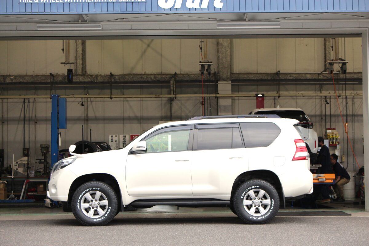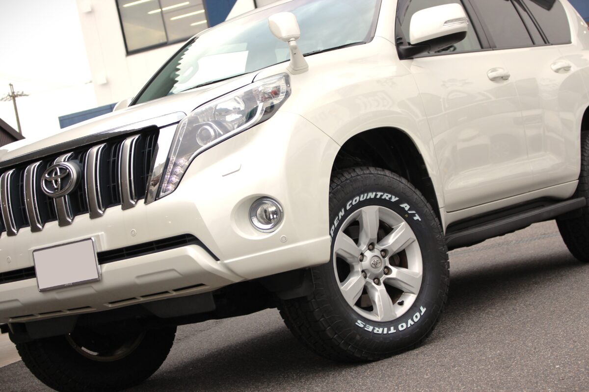 【150ランドクルザープラド】簡単リフトアップとホワイトレタータイヤでオフロード感をさらに演出!