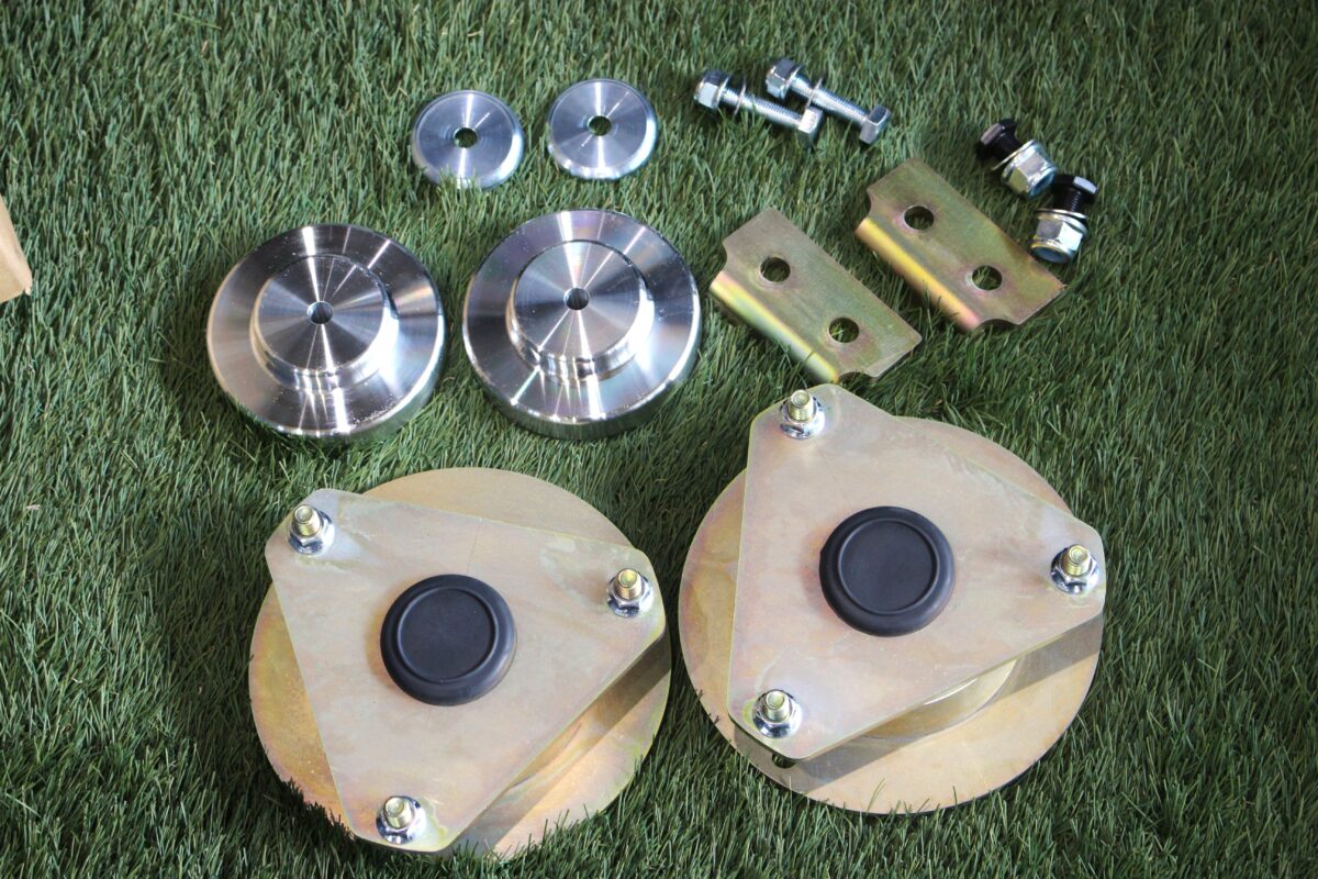 このスペーサーを純正のアッパーマウントの上に装着し、スペーサーの厚みでリフトアップします。