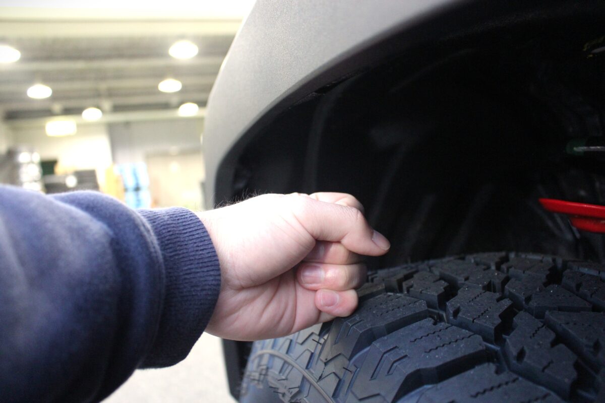 そしてこちらがリフトアップ後のフェンダークリアランス。