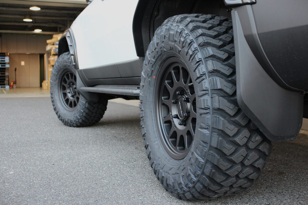 30㎜のオーバーフェンダーの恩恵もあるからこそ装着できるサイズ感。