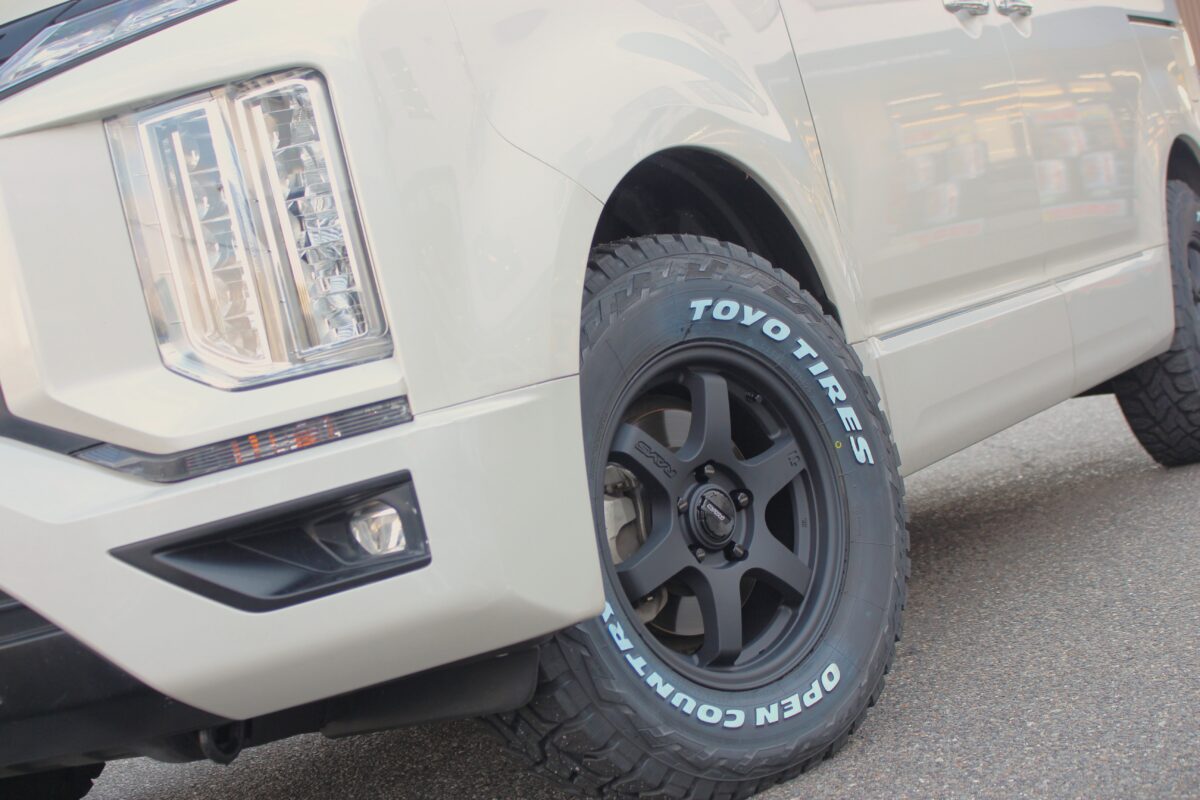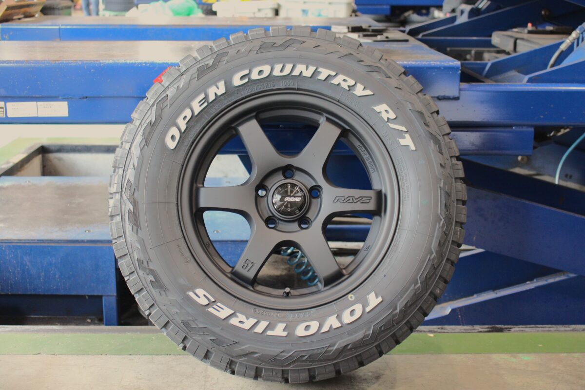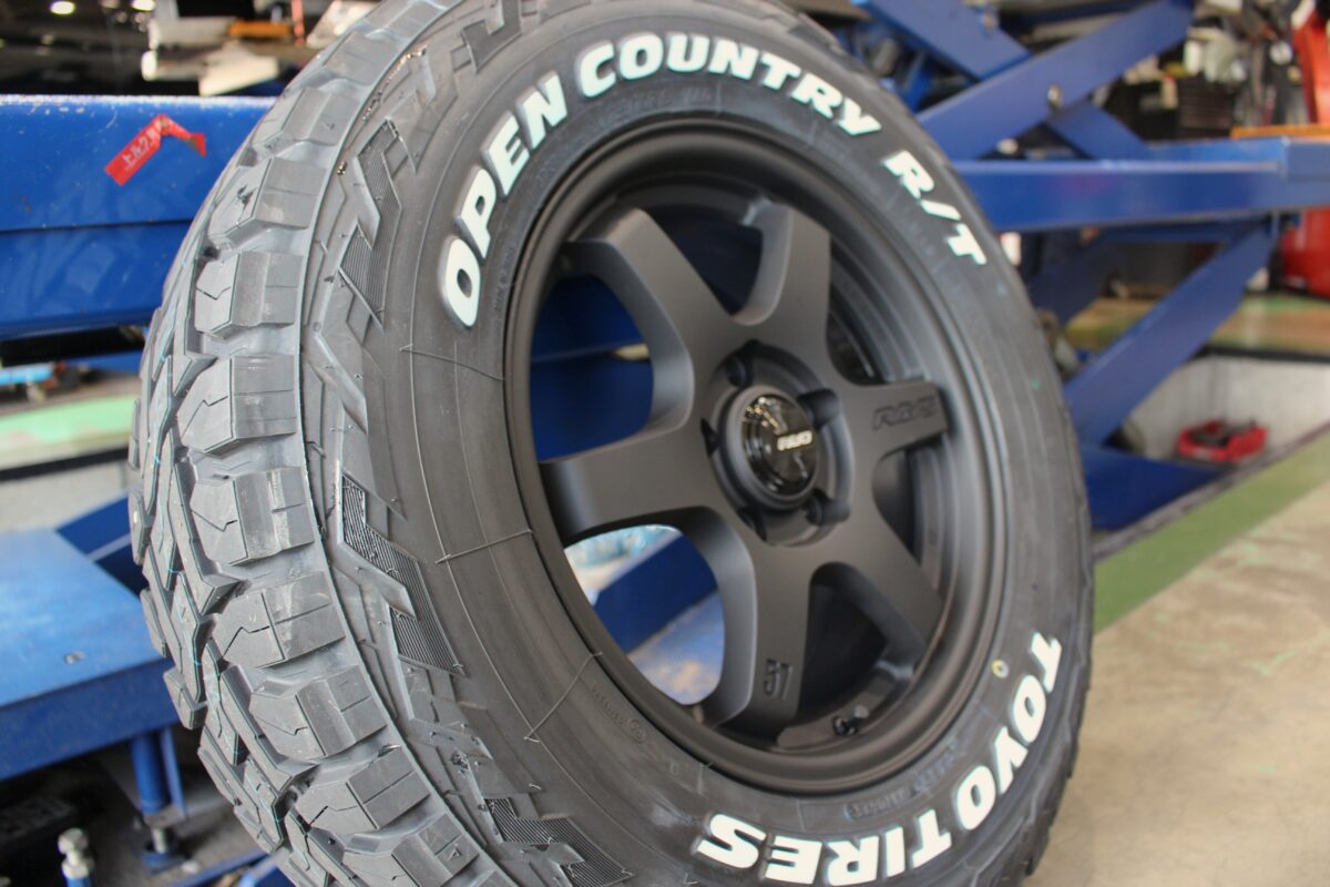 組み合わせたタイヤ"トーヨー オープンカントリーRT"のくっきりとしたホワイトレターとのコントラストもよく、ばっちり決まっています。