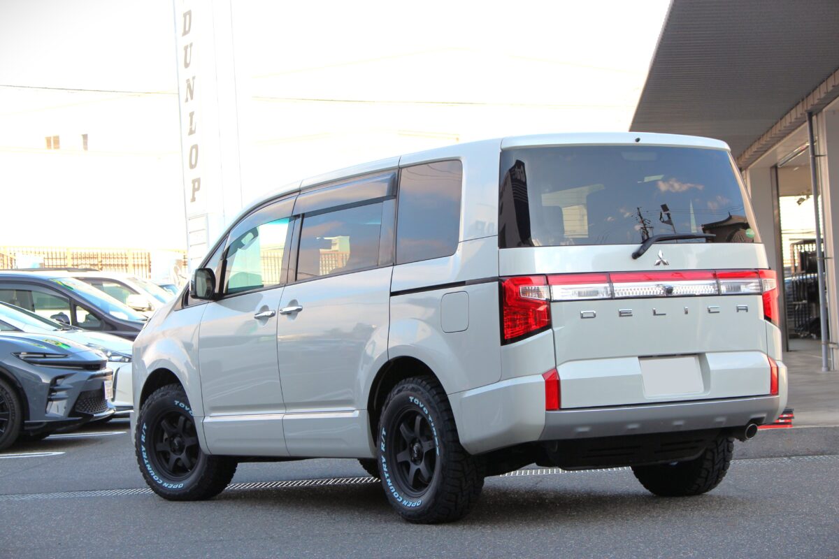 マットな質感のブラックグラファイトカラーが足元を引き締め、車両サイズの大きなデリカにスポーティーさと力強さを兼ね備えた雰囲気を纏わせます。