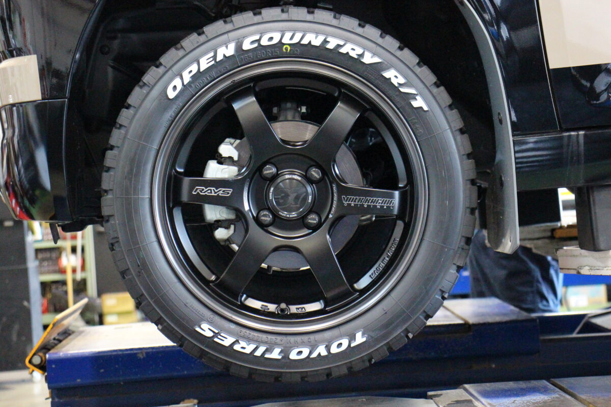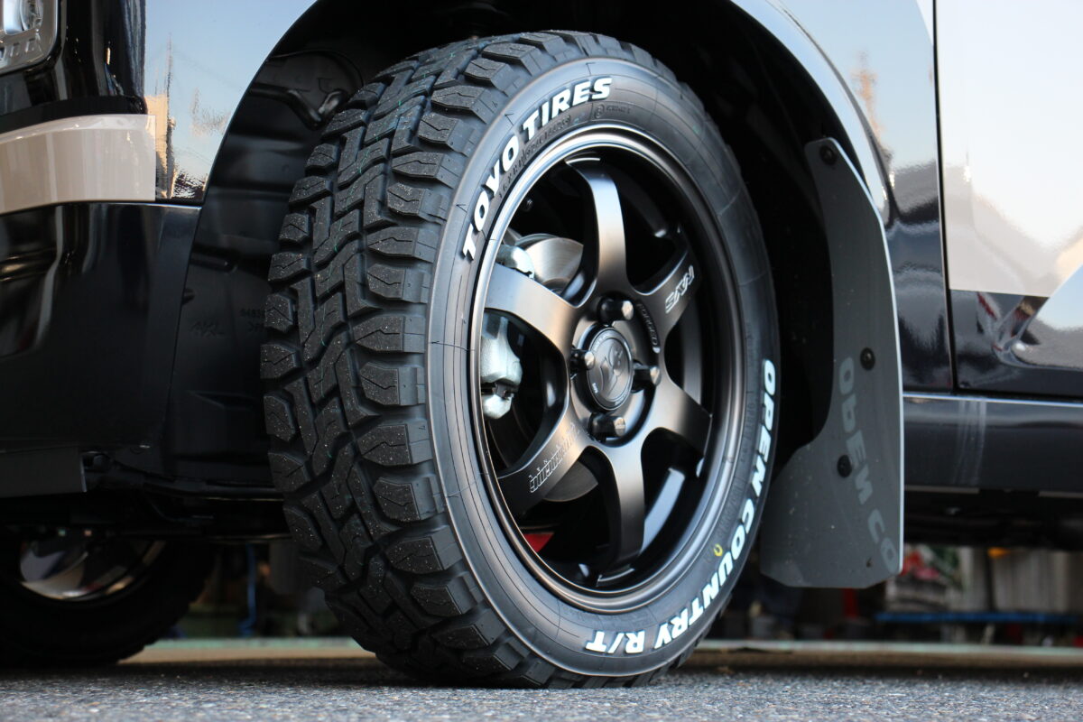 組み合わせるタイヤはトーヨータイヤの手掛けるRT(ラギットテレーンタイヤ)、オープンカントリーR/Tです。オン/オフそれぞれの路面に対応しているタイヤは様々な銘柄がありますが、RTタイヤはその中間にカテゴリー分けされます。
