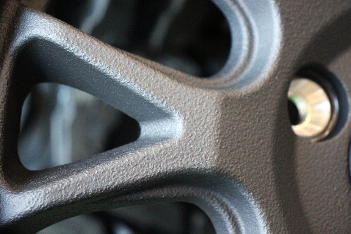 ホイールの表面にショットピーニング処理を施すことでザラついた質感を出し、
