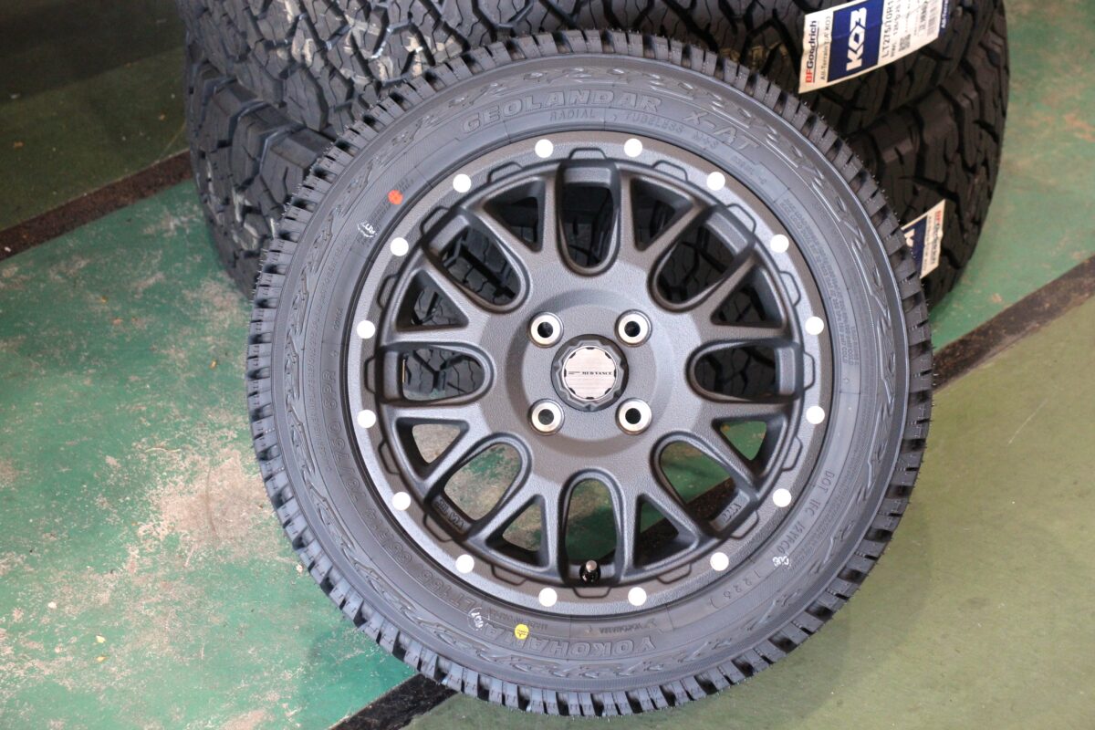ヨコハマのAT(オールテレーンタイヤ)、ジオランダーX-AT G016を組み合わせます。アグレッシブな見た目ながらオンロード性能も兼ね備えており、街乗りからアウトドアまで幅広くお使いいただけます。