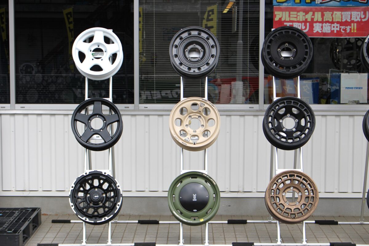 ジムニー系シリーズをメインにお借りしつつ、あわよくばのランクル250などに向けたホイールも一緒にお借りして展示しております!(^^)!」