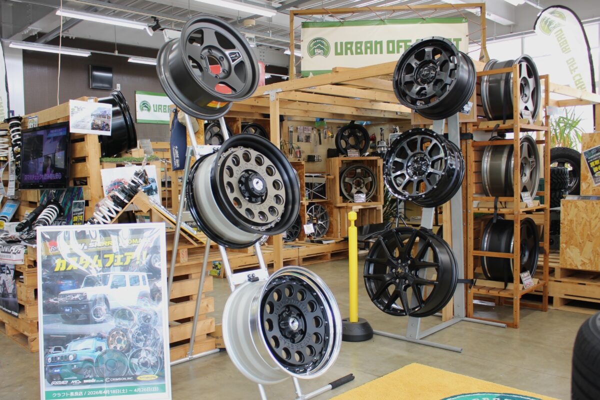 毎年大好評の「クラフト春のカスタムフェア」が今年も幕を開けます!! クラフト各店で開催されるカスタムのビッグカスタムイベントです! 話題の新作ホイールから、最新のタイヤ、サスペンションまで、各店舗が厳選した「ブランド」や「デモカー」が集結!スポーツ、オフロード、ドレスアップ───。 ジャンルを問わず、クラフトの車好きスタッフがあなたのこだわりを徹底サポート。 ■カスタムフェアの最大の特徴は、店舗ごとに開催内容や出展メーカーが異なること。 各店のプロフェッショナルが、お客様のニーズや店長の好み?(笑)によって、メーカーやアイテムを独自にセレクト。 店舗ごとに異なる、個性豊かなイベント内容にご注目ください。 ■春のドライブがもっと楽しくなる1台を、ぜひクラフトで仕上げませんか? 「自分にぴったりのホイールやサイズは?」「最新モデルの実物を見てみたい」 そんな想いに、クラフトは全力でお応えします! 開催店舗、日程は詳細は下記をご参照ください。   ■ 2026春のカスタムフェア! 開催日程・店舗 INDEX 4月18日(土)~4月26日(日)|岐阜長良店  ジムニーカスタムフェア 4月2日(木)~4月30日(木)|相模原店  HKS車高調商談会 終了したキャンペーンを見る 2月7日(土)~15日(日)|岐阜長良店  BBSホイール大商談会※終了しています 2月7日(土)~8日(日)|浜松店  ジムニー・シエラ・ノマド カスタマイズフェア※終了しています 2月14日(土)~23日(月祝)|鈴鹿店  BLITZカスタムキャンペーン※終了しています 2月21日(土)~23日(月祝)|中川店  クラフト2026春のカスタムフェアin中川店※終了しています 2月21日(土)~23日(月祝)|一宮店  Wedsマッドヴァンス・ホイール展示会※終了しています 2月1日(日)~28日(土)|尾張旭店  ローダウン&リフトアップ サスペンションキャンペーン※終了しています 2月21日(土)~3月1日(日)|岐阜長良店  ADVAN Racingホイール展示会※終了しています 2月21日(土)~3月1日(日)|厚木店  クラフト2026春のカスタムフェアin厚木店※終了しています 2月21日(土)~3月1日(日)|相模原店  クラフト2026春のカスタムフェアin相模原店※終了しています 3月7日(土)~8日(日)|知立店  鍛造ホイールフェア2026※終了しています 3月7日(土)~8日(日)|浜松店  スイフトスポーツ・カスタマイズフェア※終了しています 2月21日(土)~3月15日(日)|四日市店  RAYS即納・在庫フェア!厳選在庫品特別商談会※終了しています 3月20日(金祝)~3月22日(日)|中川店  春のカスタムフェア ADVAN Racing・RAYS・TWS 鍛造ホイール展示会※終了しています 3月21日(土)~3月29日(日)|四日市店  Weds&WORK 2026年新作ホイールフェア※終了しています 3月20日(金祝)~4月5日(日)|相模原店  MIDホイール展示会※終了しています 4月4日(土)~4月12日(日)|鈴鹿店  春の鍛造ホイールフェア※終了しています 目次に戻る ■ BBSホイール大商談会 2月7日(土)~15日(日)|岐阜長良店 ※終了しています   期間中は、BBSの人気モデルをズラりと展示いたします! カタログだけでは伝わりにくい、本物の質感をぜひお確かめください。 ● 期間:2026年2月7日(土)~15日(日) ● 出展・展示予定メーカー:BBS ● 詳細情報: 【BBSホイール展示会開催します】世界最高峰の鍛造ホイールBBSが勢揃い!現物チェックも買うのも期間中がチャンス! 期間中はイベント特別プライスでご案内! さらにご成約いただいた方には、うれしい「豪華ご成約特典」もご用意しております。 スタッフ一同、皆様のご来店を心よりお待ちしております! クラフト岐阜長良店の場所を見る   目次に戻る ■ ジムニー・シエラ・ノマド カスタマイズフェア 2月7日(土)~8日(日)|浜松店 ※終了しています   ジムニーシリーズにターゲットを絞ったフェアを開催! 普段からジムニーカスタムに強い浜松店ならではの豊富な在庫に加え、各出展メーカー様にご協力頂き、今回のイベントのために多数の展示ホイールをご用意します! ● 期間:2026年2月7日(土)~8日(日) ● 出展・展示予定メーカー: MID / MLJ / RAYS / weds ● 詳細情報: 2月7日(土)・8日(日)はアーバンオフクラフト浜松店で【ジムニー、シエラ、ノマドカスタマイズフェア】を開催します!! イベント期間中に対象のタイヤ・ホイールセットをご成約いただいた方には「盗難防止ナット(当社指定)」をプレゼント! タイヤサイズやホワイトレター等のお悩みもお気軽にどうぞ! クラフト浜松店の場所を見る   目次に戻る ■ BLITZカスタムキャンペーン 2月14日(土)~23日(月祝)|鈴鹿店 ※終了しています 車高調整機能や減衰力調整などの機能が付いたハイスペックモデル「BLITZ ZZ-R」を中心に、マフラーや補強パーツ等のBLITZ製品が対象! 初めてのカスタムを検討されているビギナーの方から、こだわりのツライチを狙うユーザー様まで、理想の1台を一緒に作りませんか? ● 期間:2026年2月14日(土)~23日(月祝) ● 出展・展示予定メーカー: BLITZ ● 詳細情報: 2月は愛車をブリッツでトータルカスタムチューン!「BLITZカスタムキャンペーン」開催決定! メーカー協賛のご成約特典として「BLITZ サスパワーエアフィルターLM